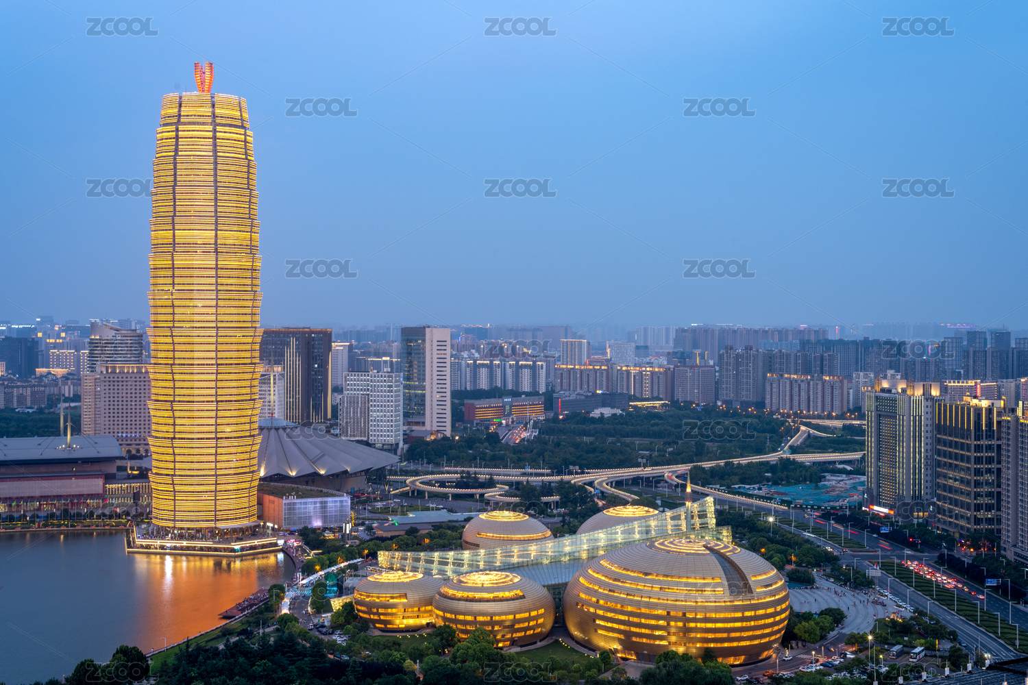航拍中国河南郑州郑东新区CBD大玉米城市地标建筑
