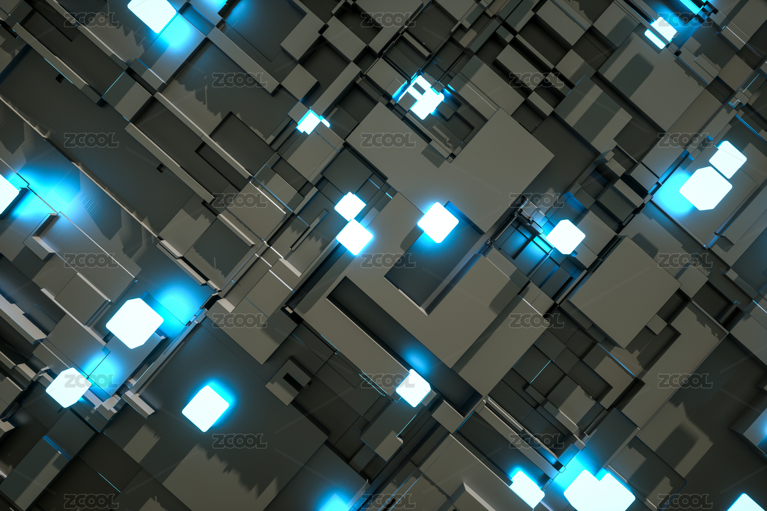 几何抽象科技背景,随机起伏的方块组合的类似芯片电路的背景。