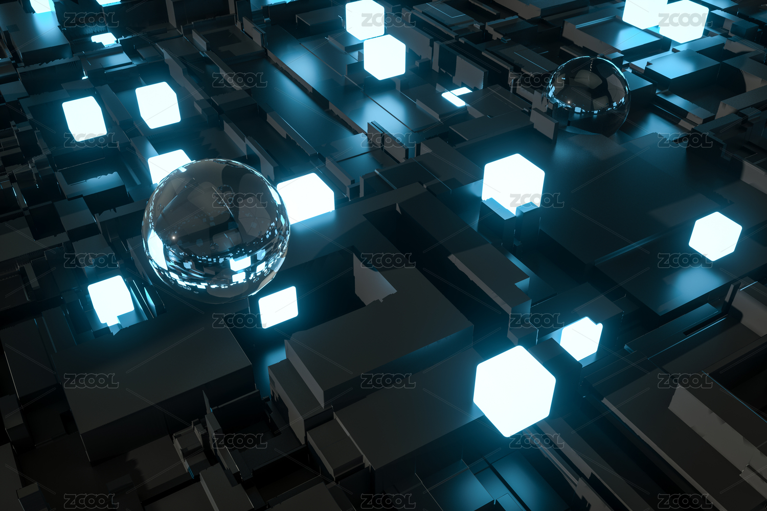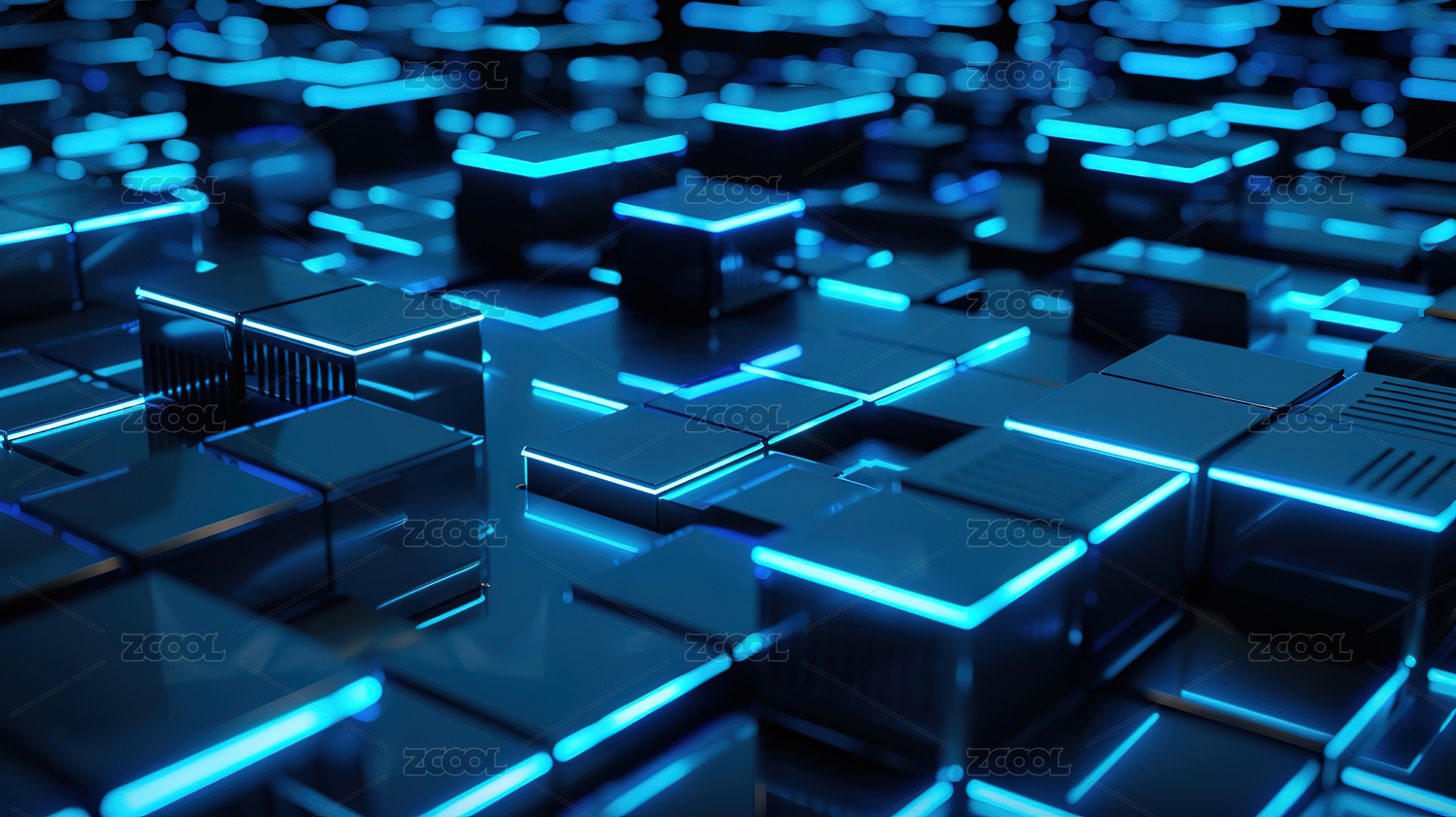 数码科技蓝色灯光立体抽象图形海报网页背景