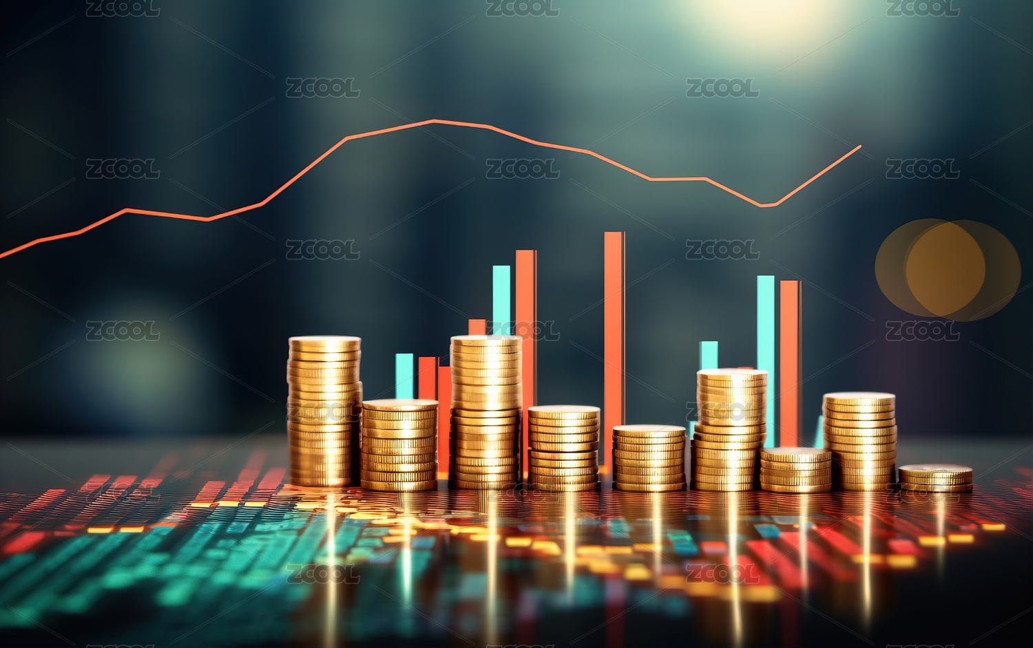 3D渲染,三维,分析,图表,基金,市场,投资,折线,插画,数据