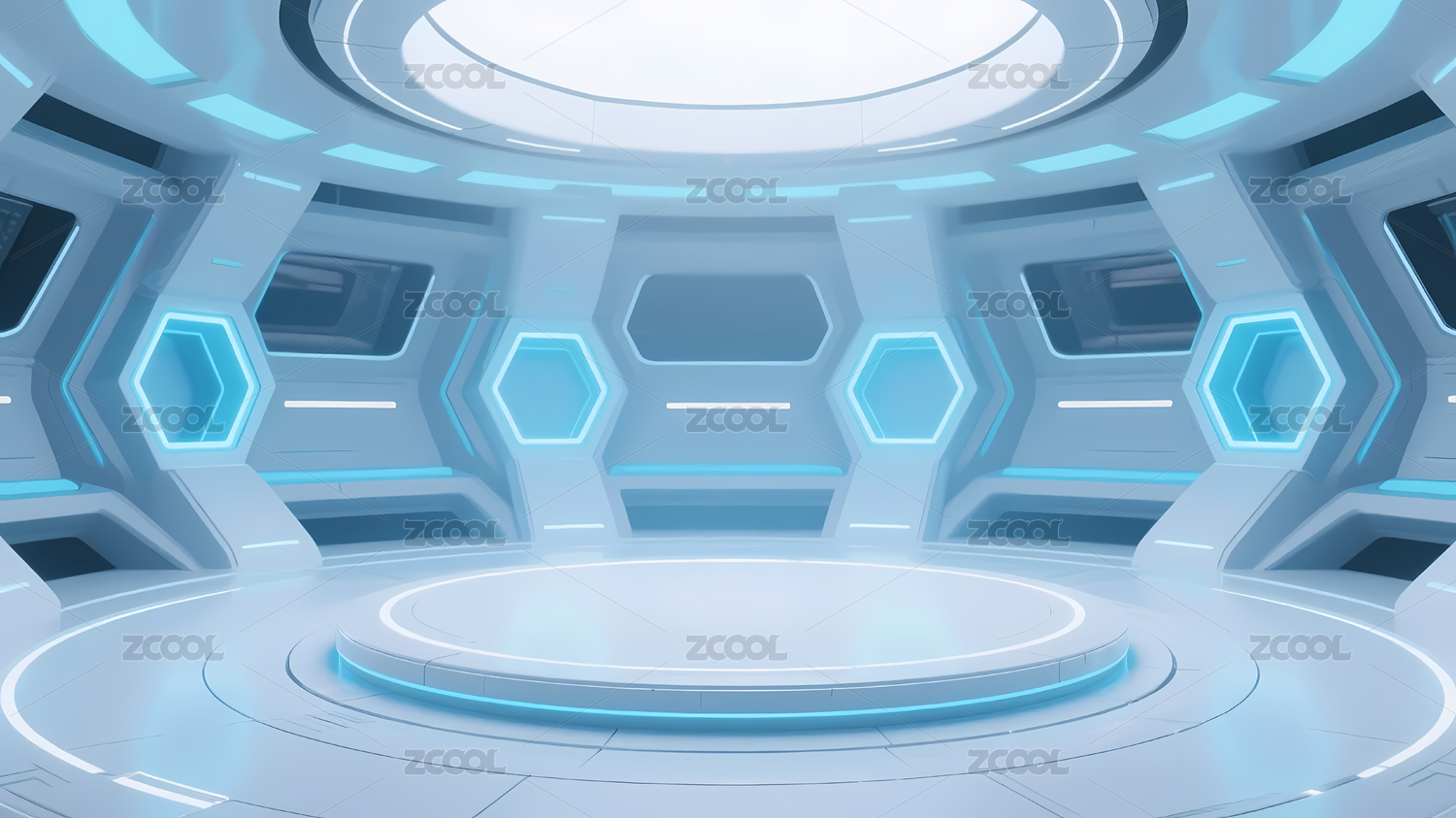 未来感圆形平台室内场景