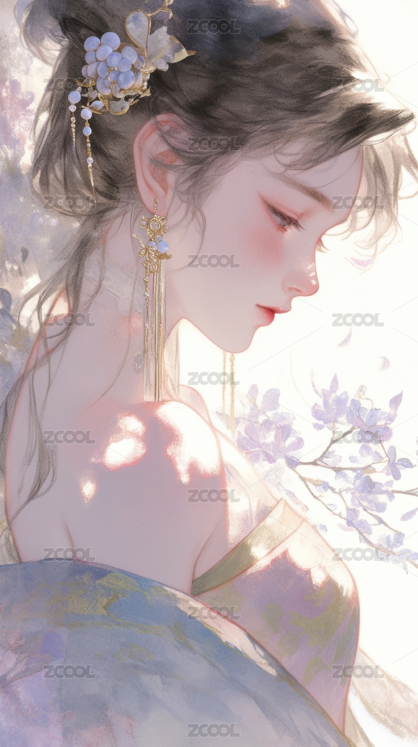 美女,女孩,人像,薄纱,唯美,半身,沉醉,思考,闭眼,容貌