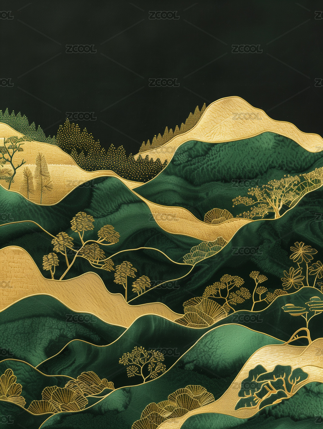 中国风刺绣创意山水画