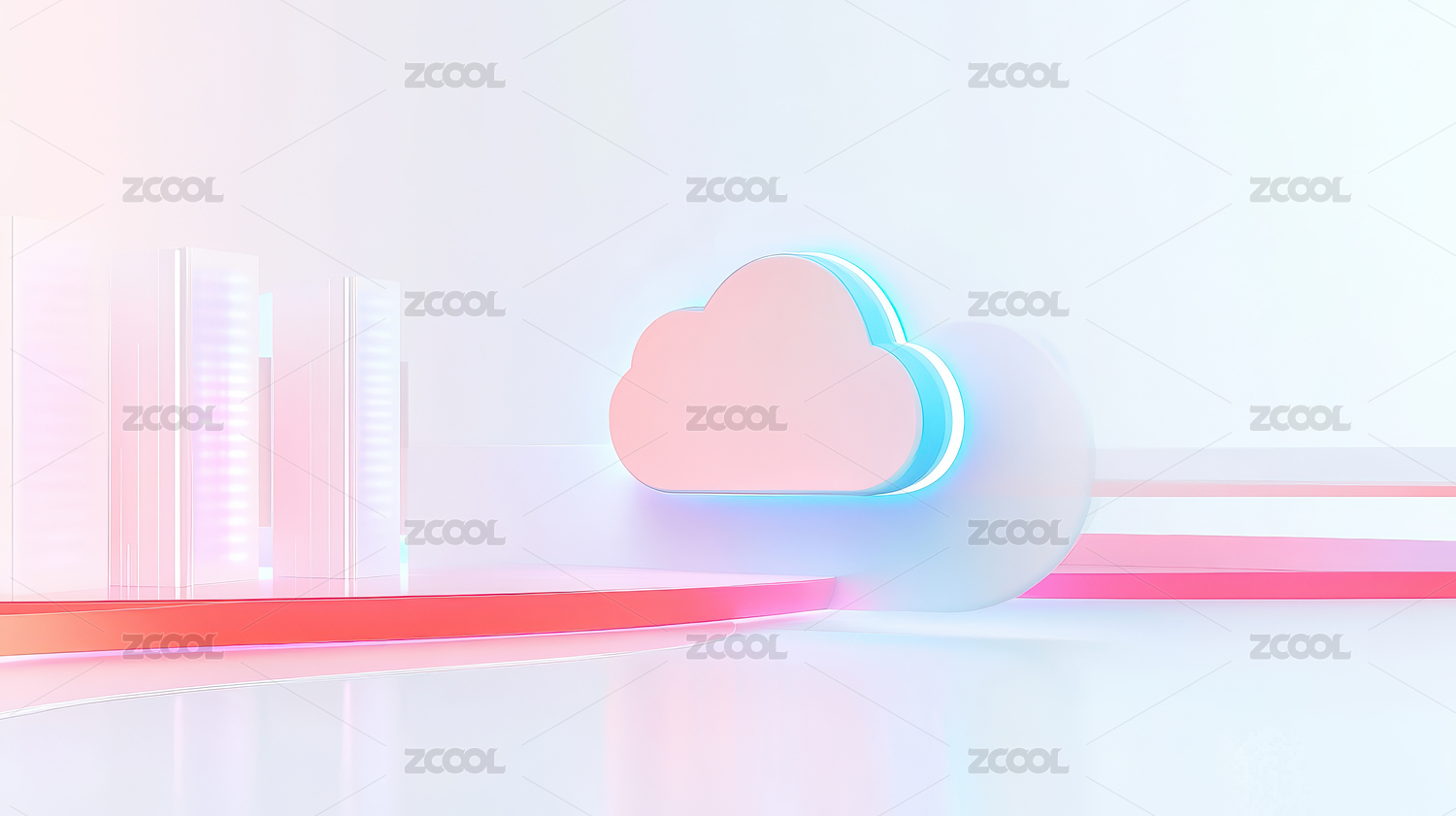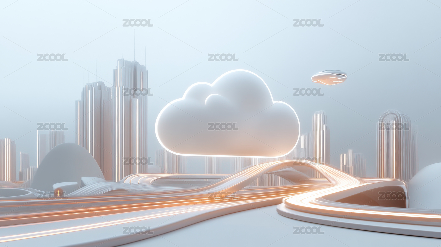 3D 渲染图一个连接到云服务器的景观
