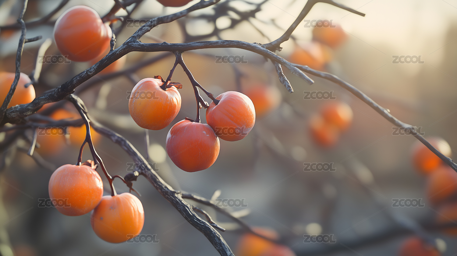 大自然中秋天丰收的水果水晶柿子的自然风景