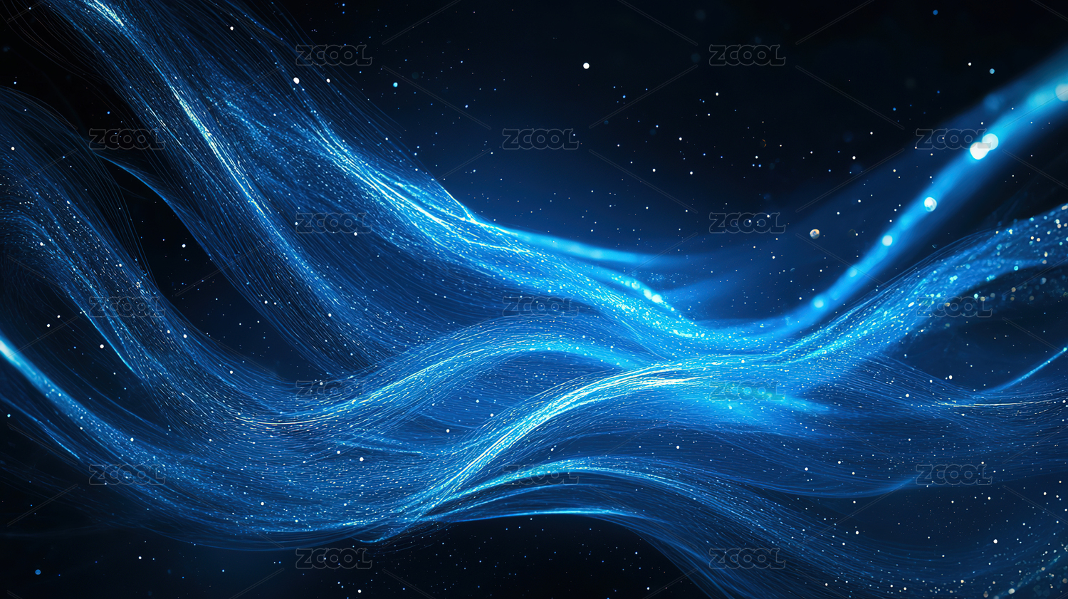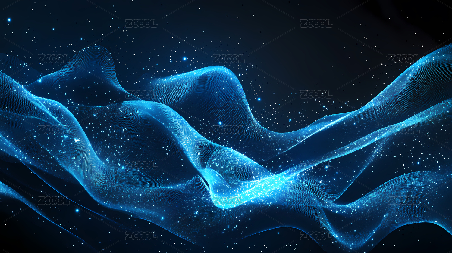 深蓝色波浪与科技感光点图像