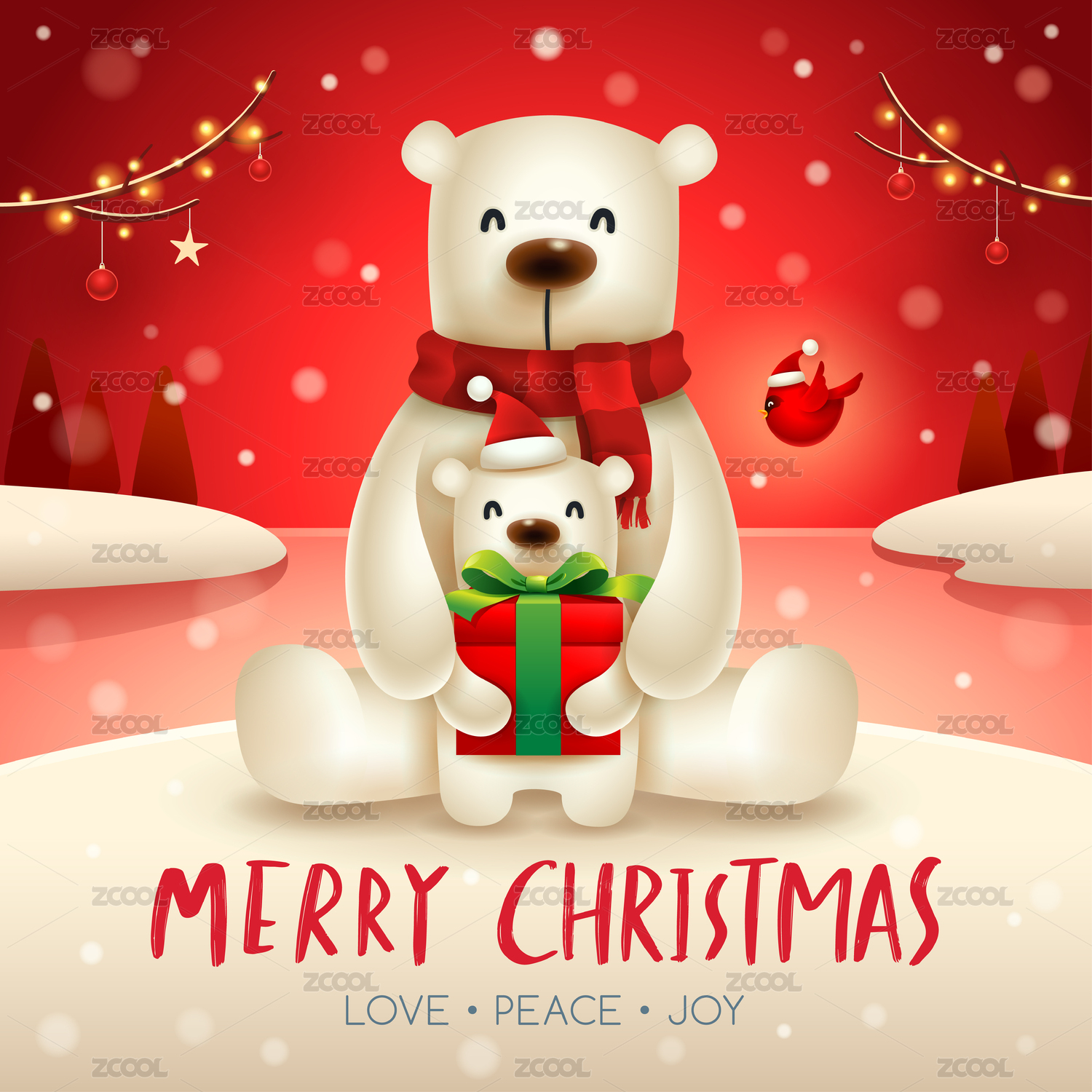 北极熊与大招牌。圣诞快乐书法刻字设计。