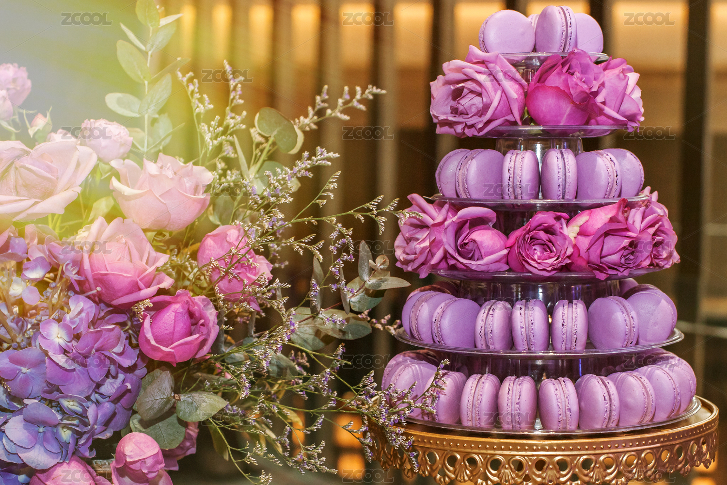 紫色马卡龙塔,欧式奢华甜品。