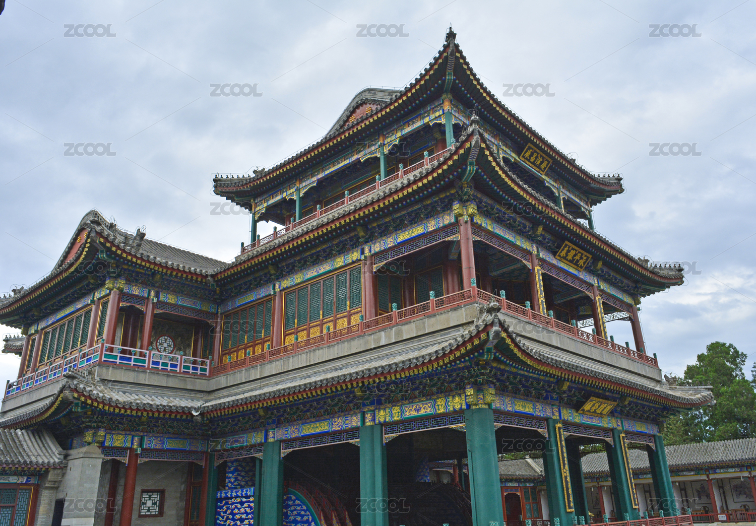 中国北京海淀颐和园德和园大戏楼正侧面照片