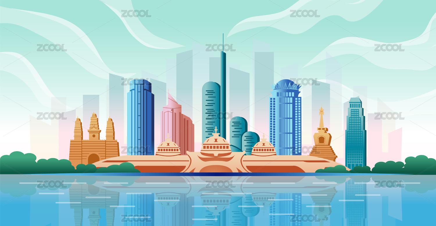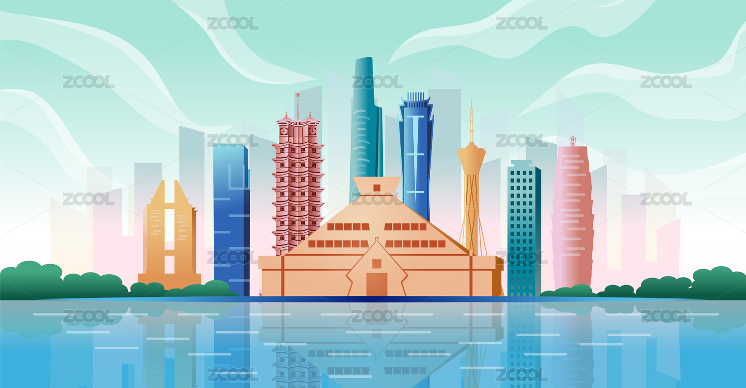 中国,辽宁省,大连市,城市,风景,地标,建筑,矢量,插画,扁平