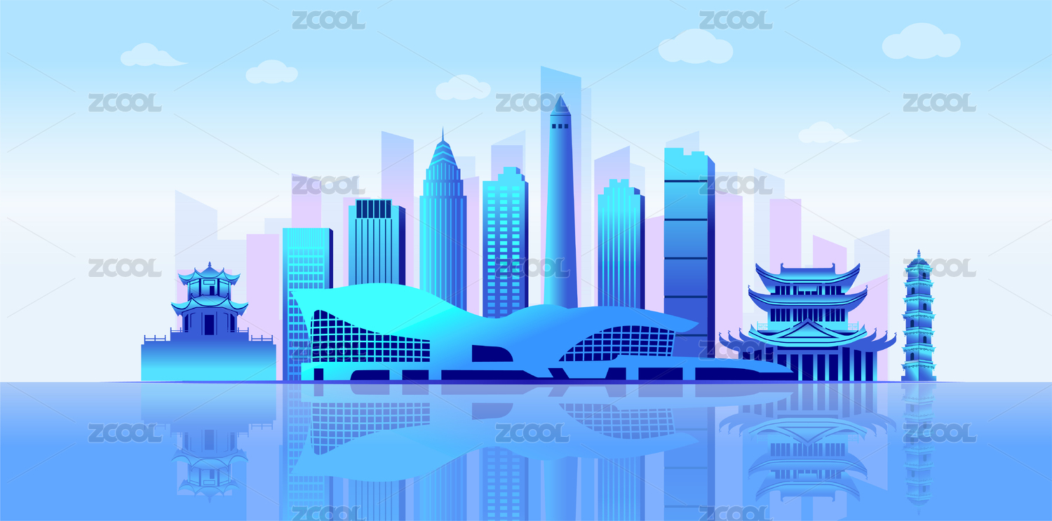 中国江苏省淮安市城市矢量插画网页版蓝色