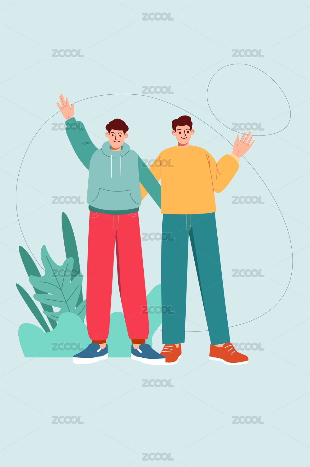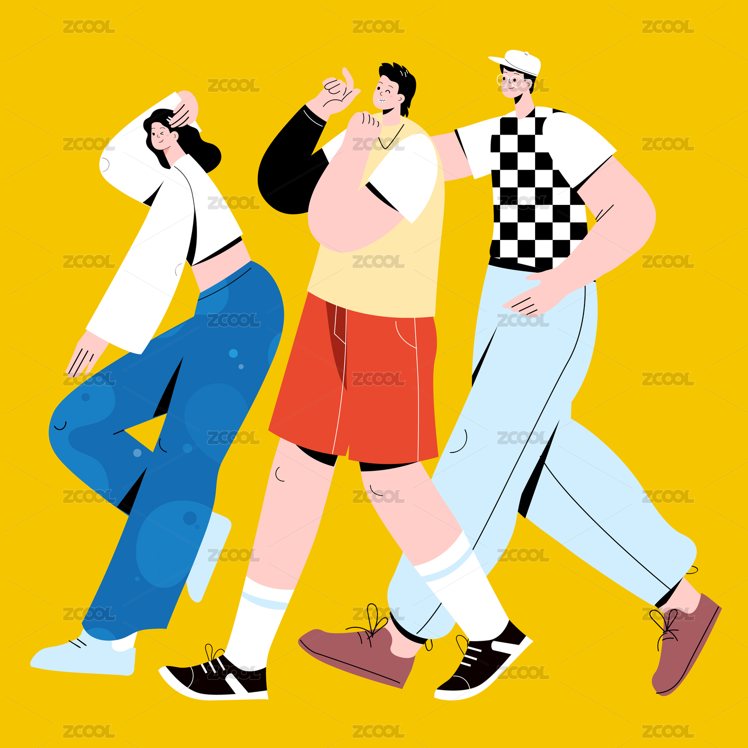 运动休闲青年男女组合插画