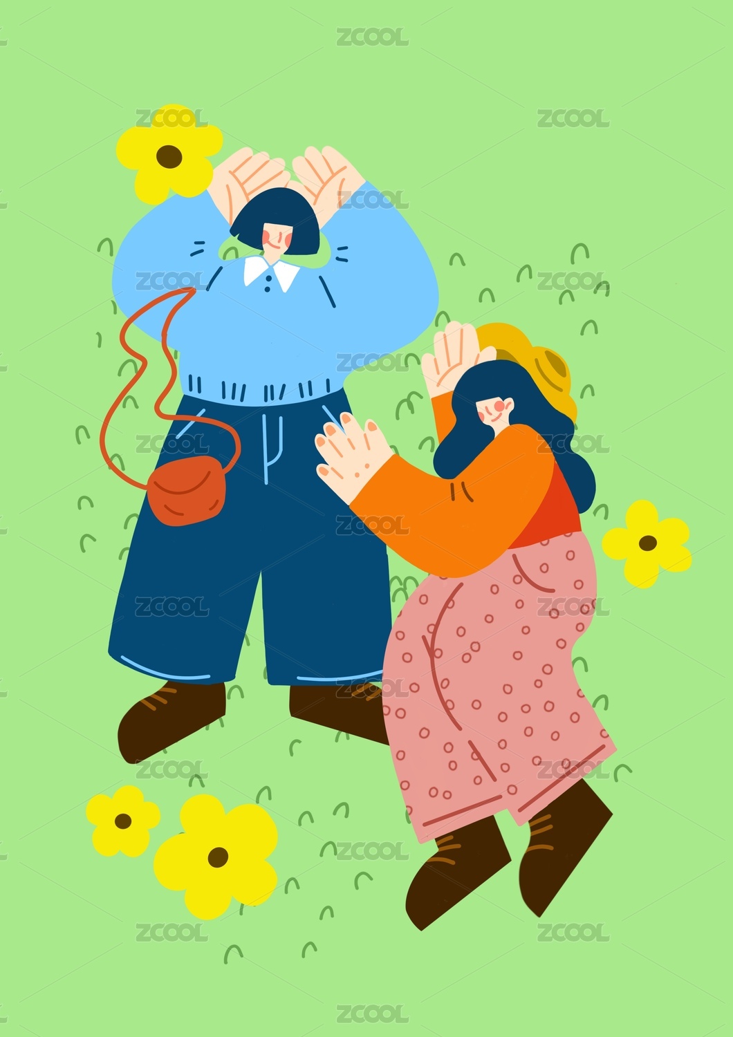 两个女孩矢量插画