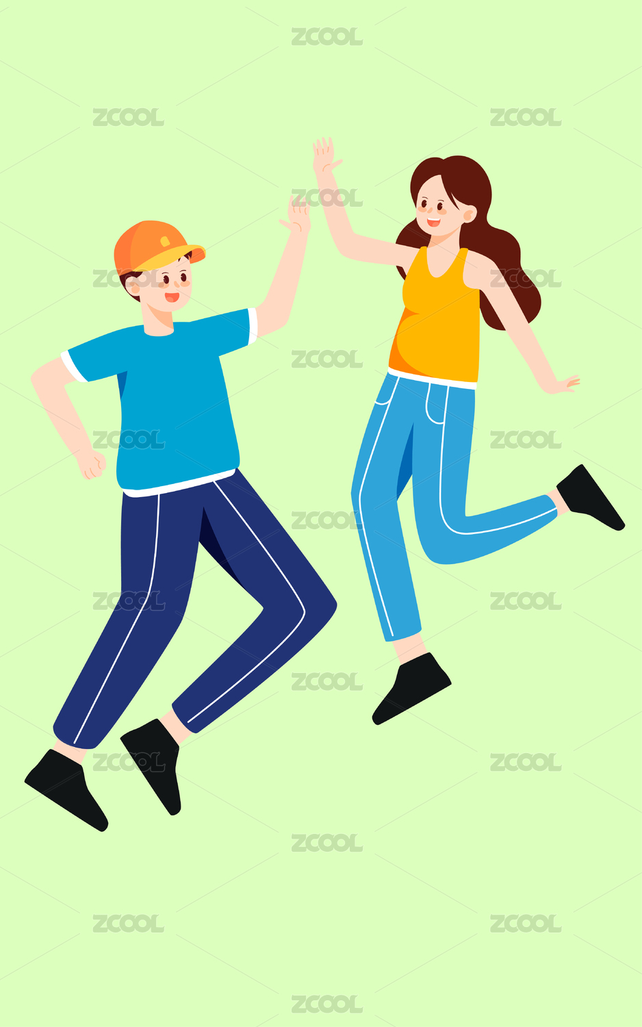 五四青年节人物开心击掌插画年轻人跳跃海报
