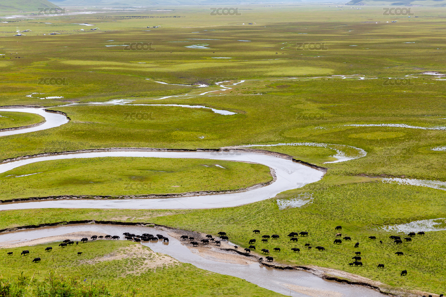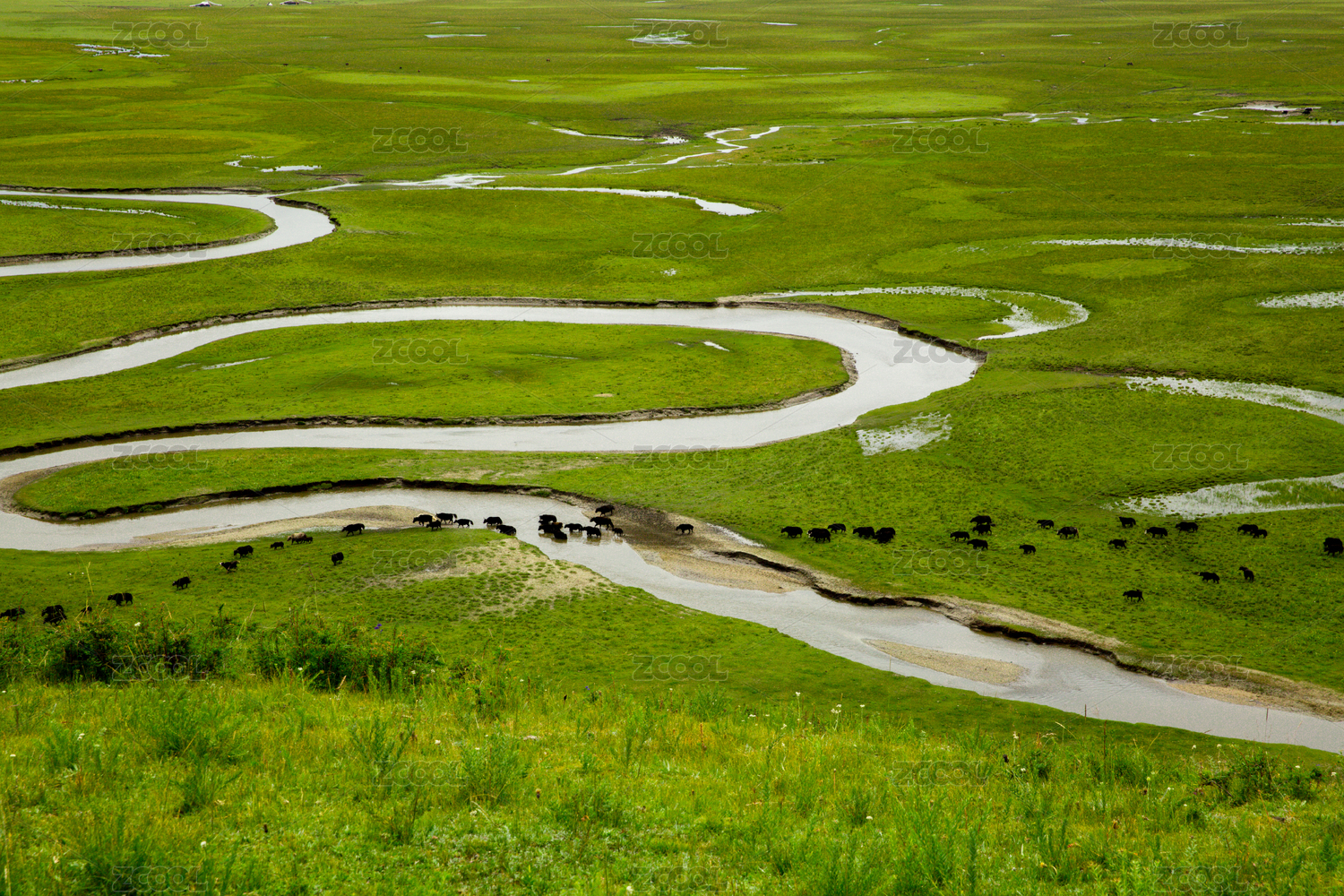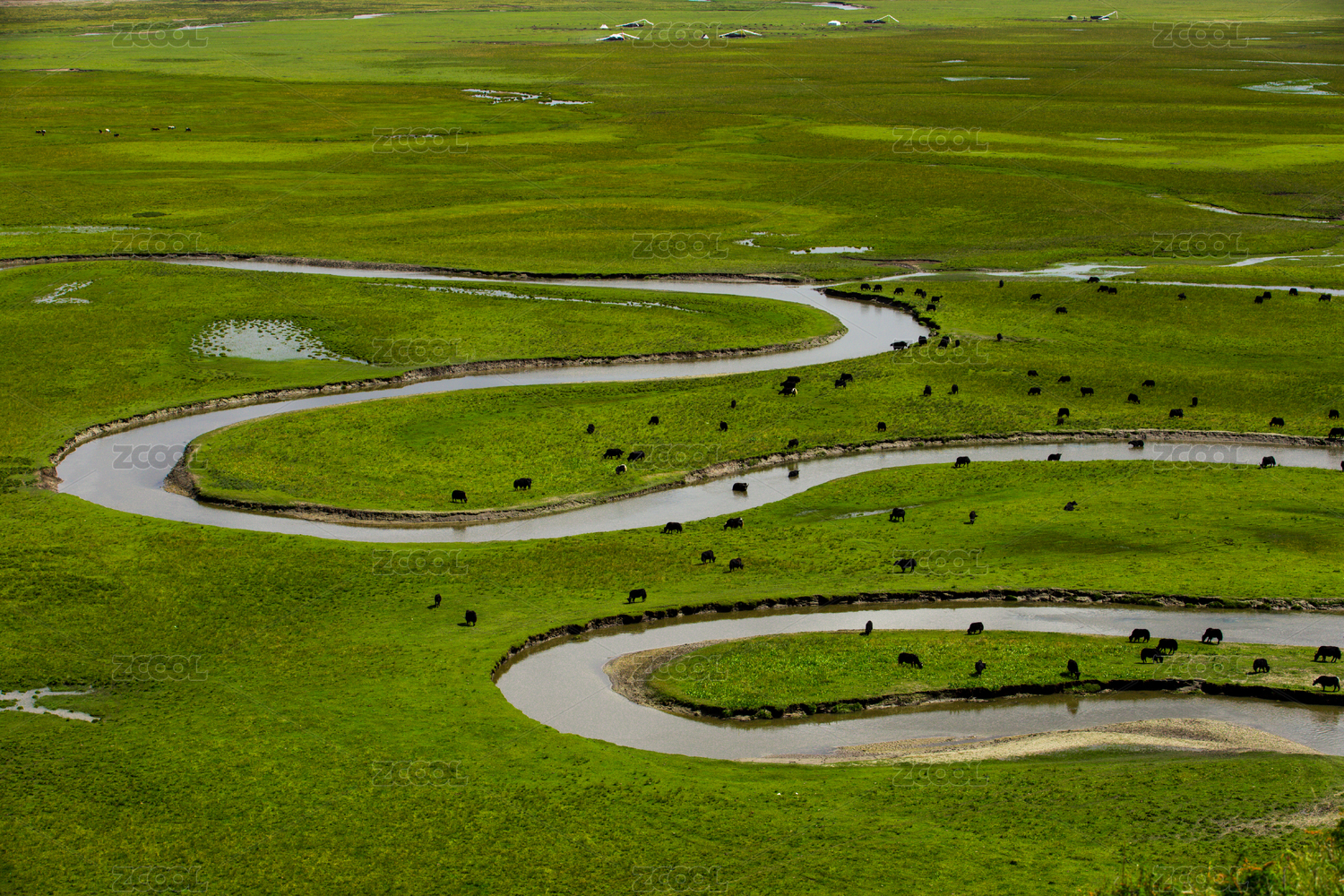 甘肃甘南黄河大草原玛曲阿万仓湿地蜿蜒河流