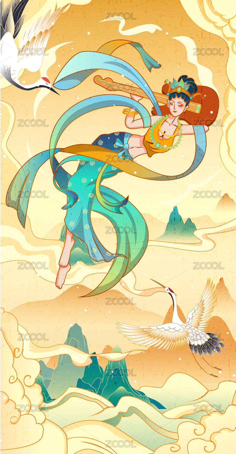 敦煌,天女,仙鹤,国风,古风插画,插画