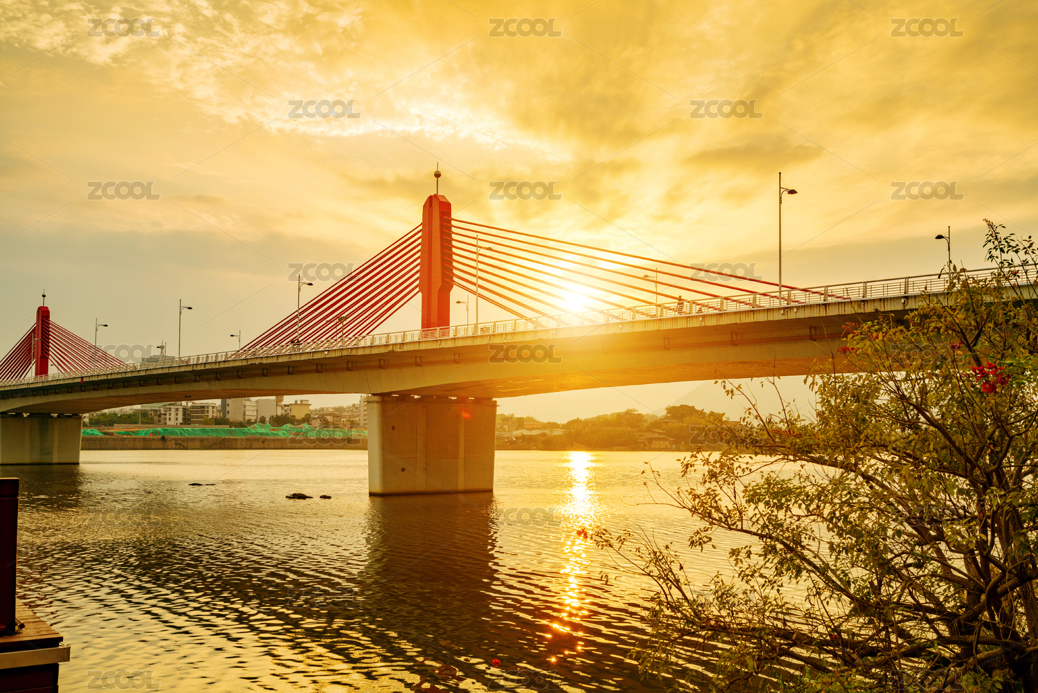 桥梁,桥,无人,交通,运输,日落,黄昏,铁路桥,河,河流