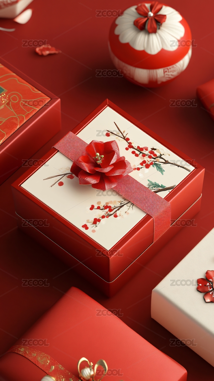 新年元旦元宵节日高级礼物礼物盒电商海报