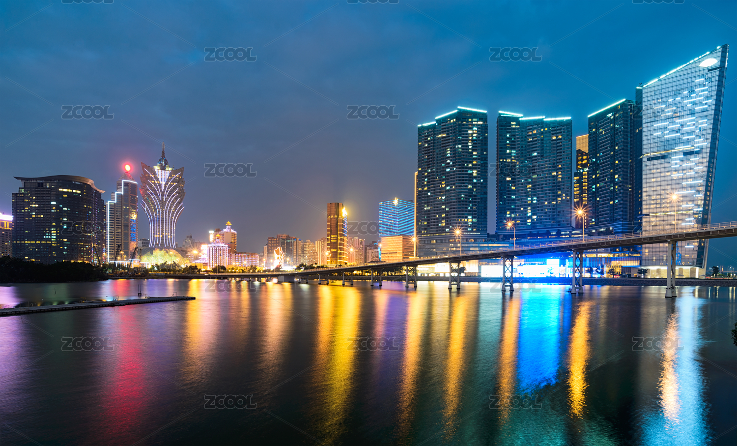 中国,澳门,城市,天际线,日落,夜景,赌场,地标,天空,云