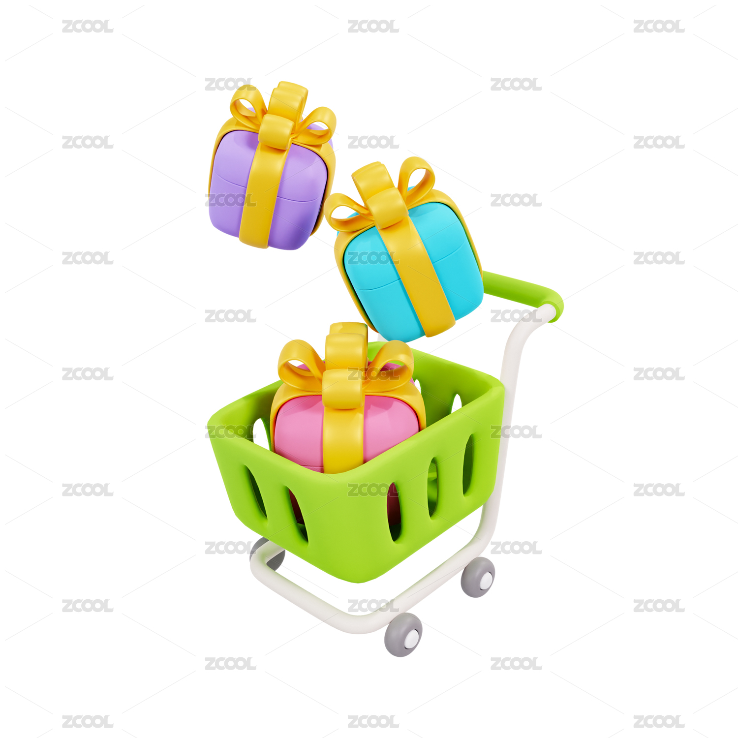 三维卡通礼物盒与购物车3D渲染