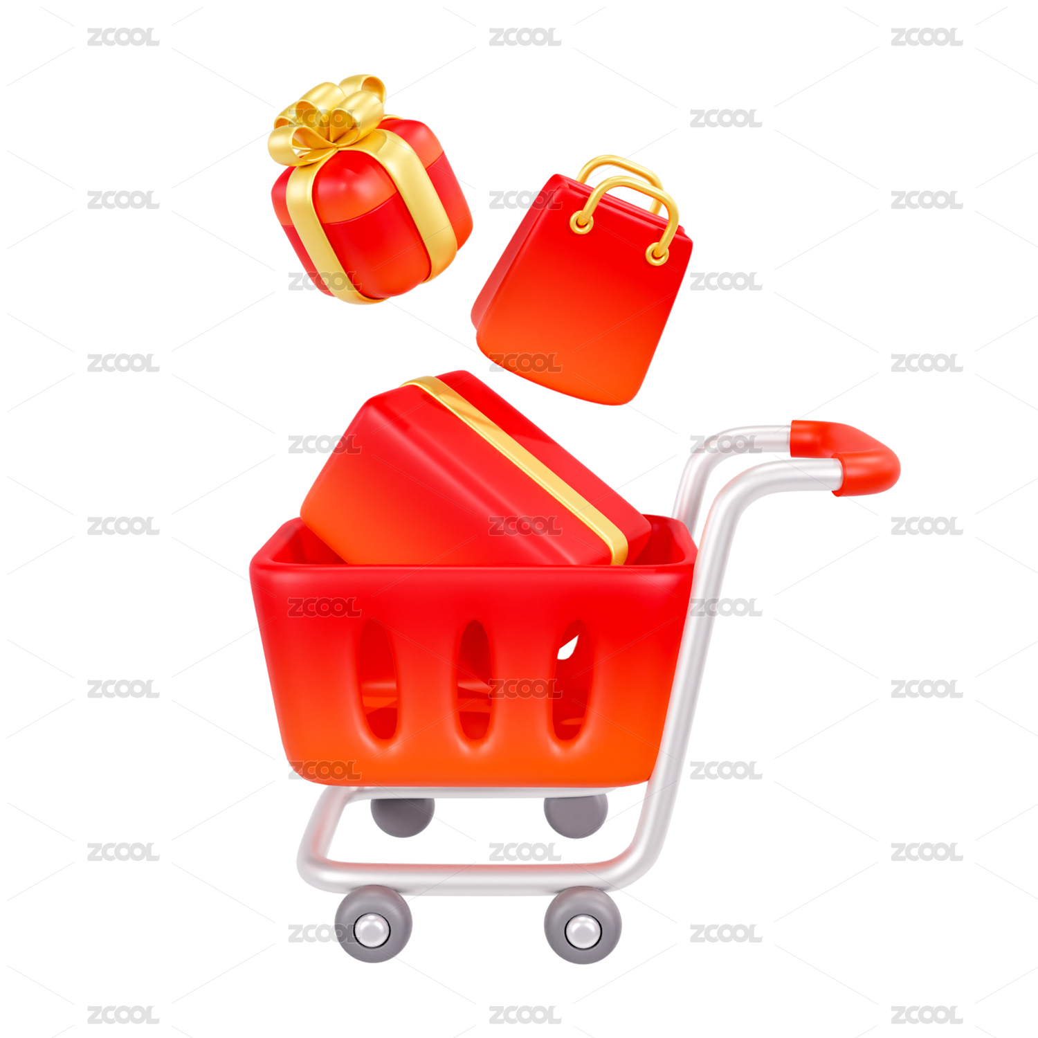 购物车,购物篮,购物,销售,3D,超市,购买,黄色,橙色,节日