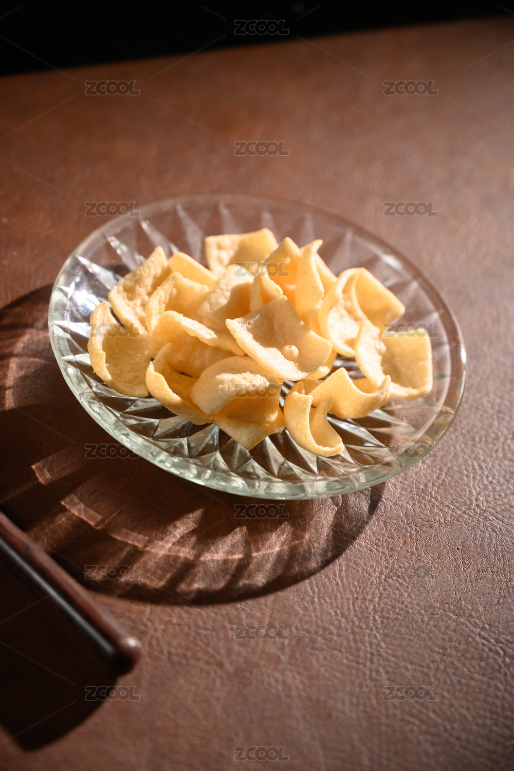 桌面上的盘子里的美味可口的虾片