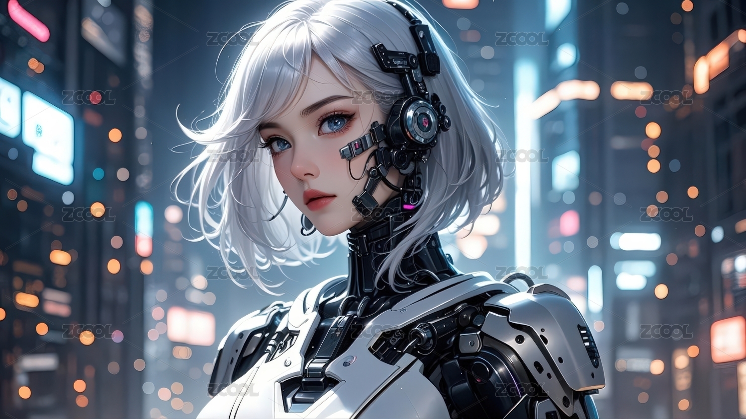 可爱,机甲女孩,3D,渲染风格,白色机甲,金色装饰,机甲,耳环,可爱风,Q版
