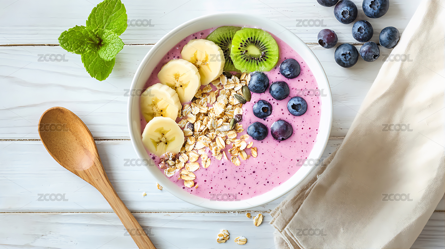 水果,酸奶,蓝莓,猕猴桃,室内,生活,食物,轻食,健康,颜色