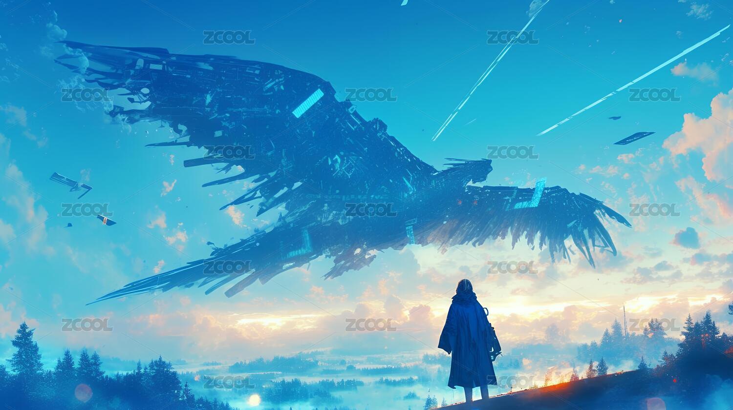 冰蓝羽兽俯瞰幻想世界
