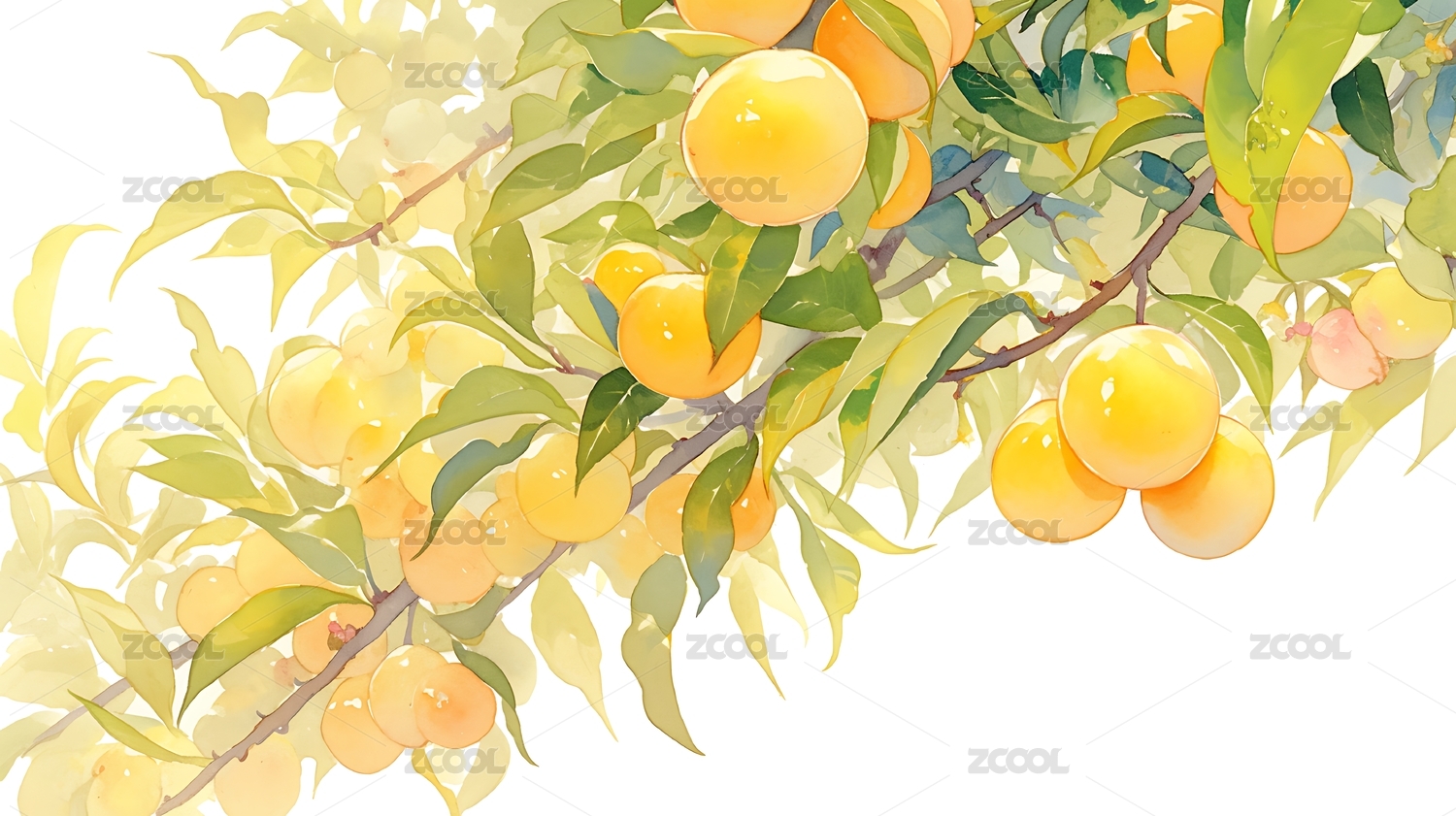 枝头黄果绿叶插画