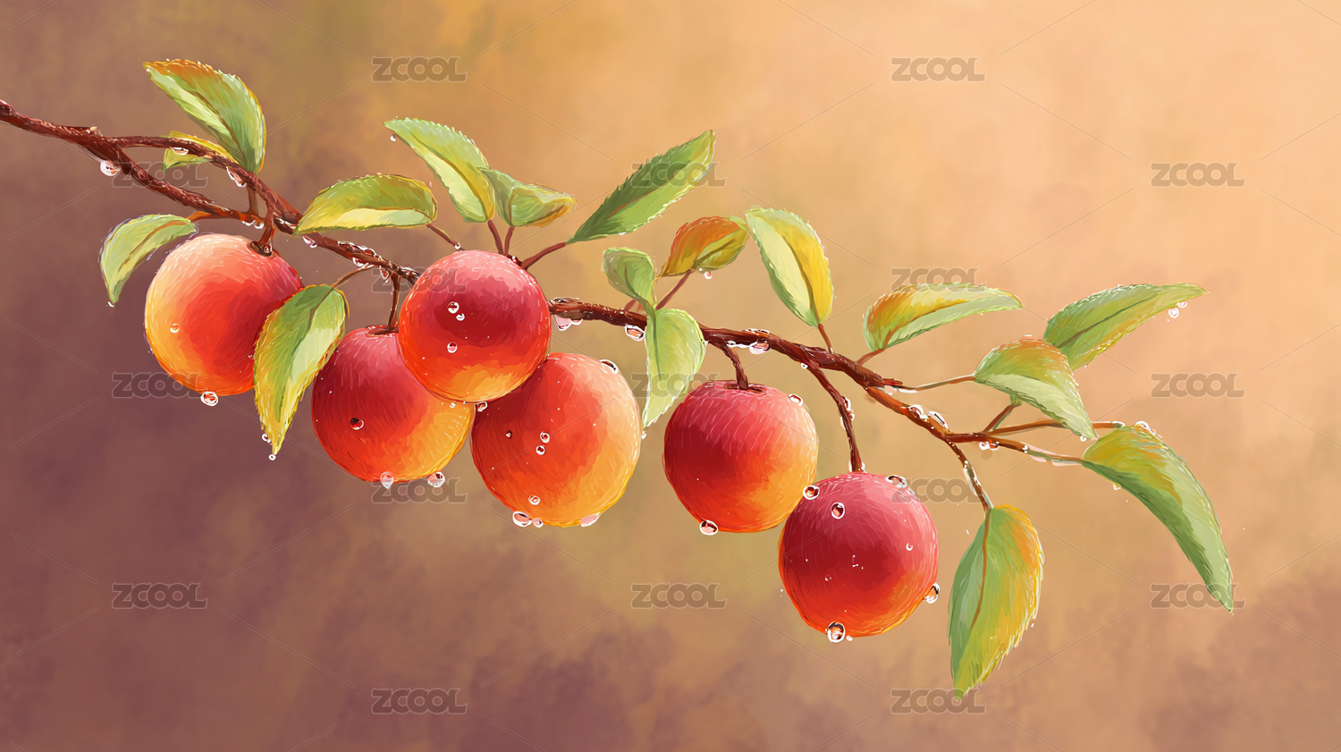 树枝上的饱满的果实插画图