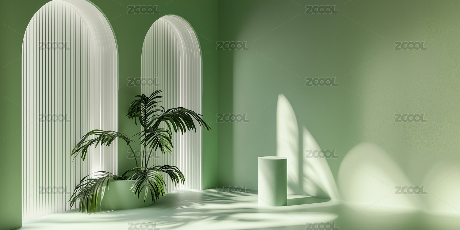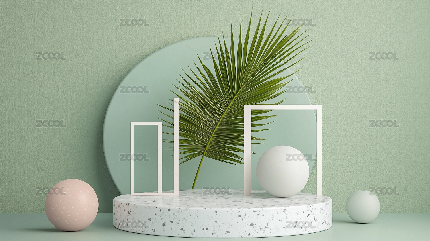 三维渲染的简约简洁极简薄荷绿色彩格调电商产品展台