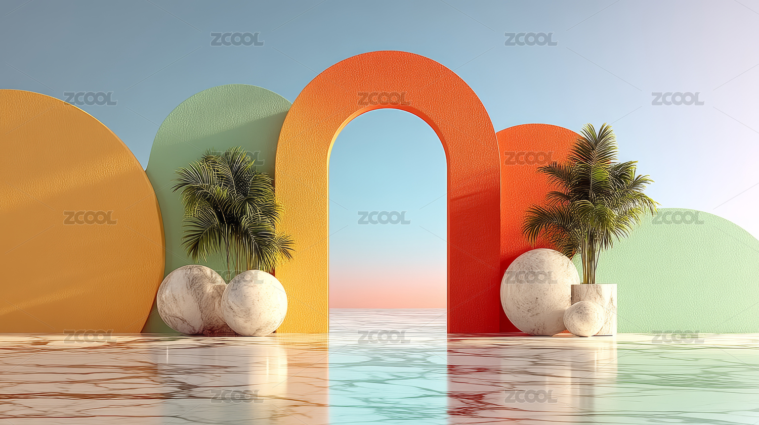 3D,三维,几何,简约,简洁,柔色,柔和,明亮,展示台,展台