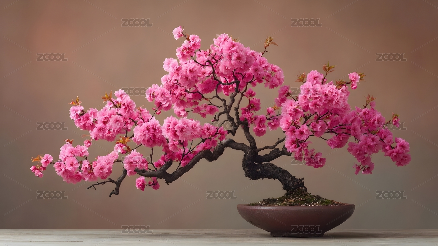 粉色樱花盆景艺术