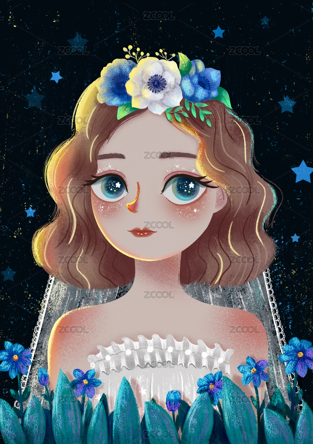 小仙女,头像,梦幻,花朵,女生,艺术,夜晚,大眼睛,儿插,肌理