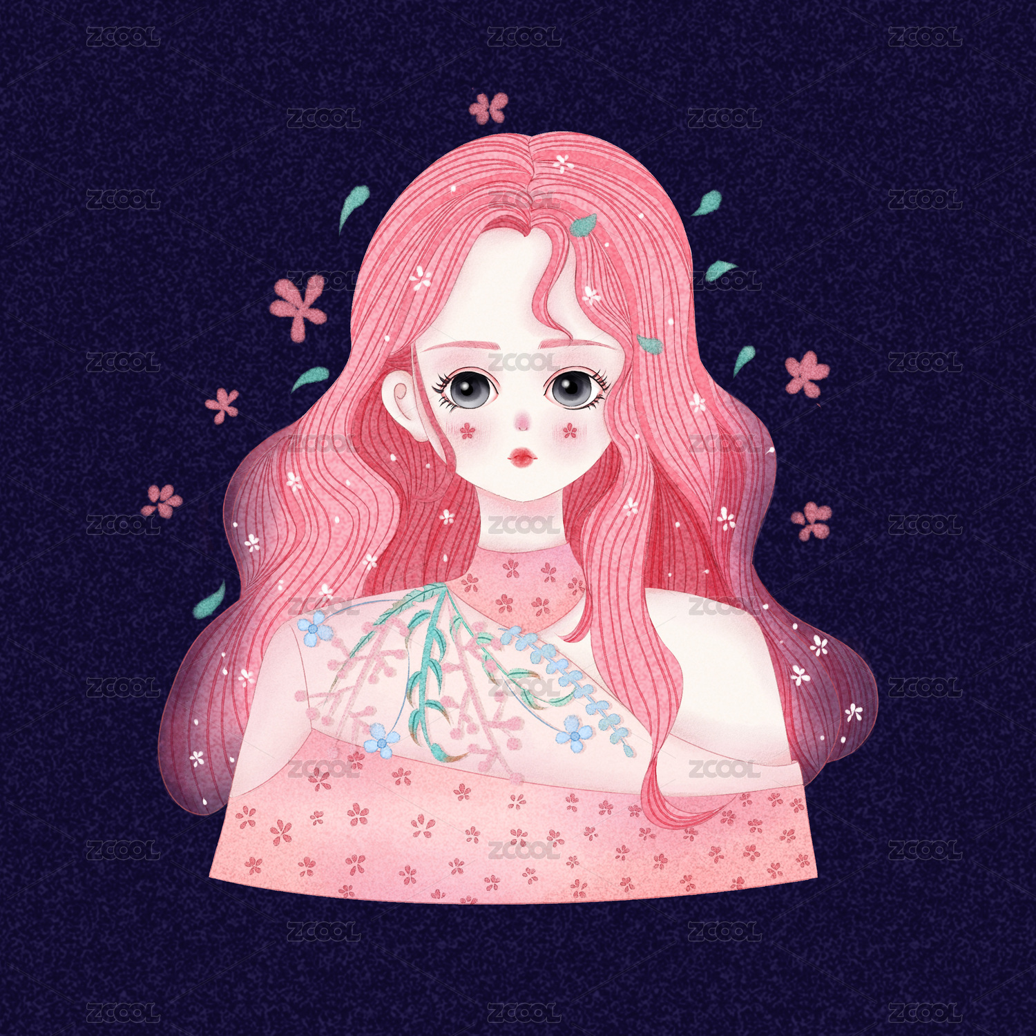 女孩肌理插画