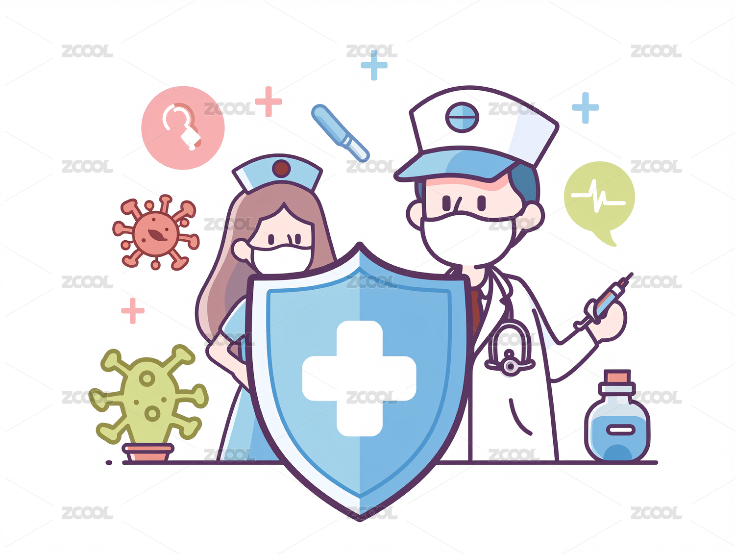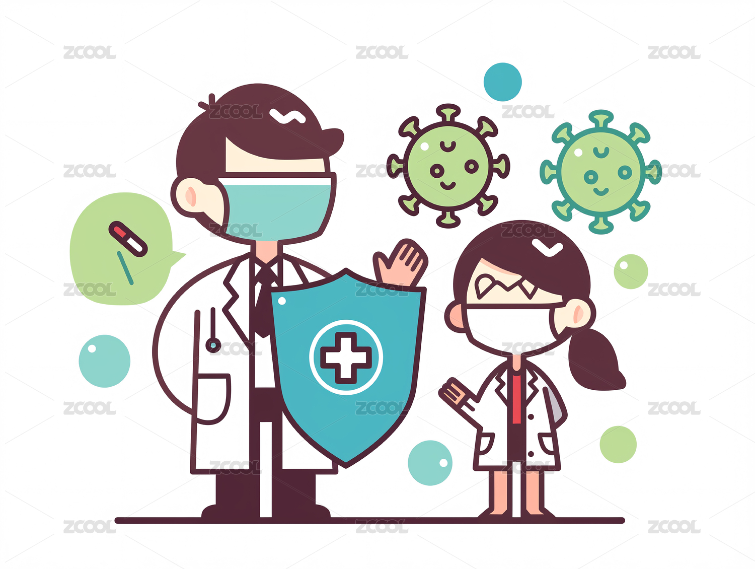 医生,口罩,卫生,戴口罩,盾牌,对抗,战斗,病毒,细菌,插画