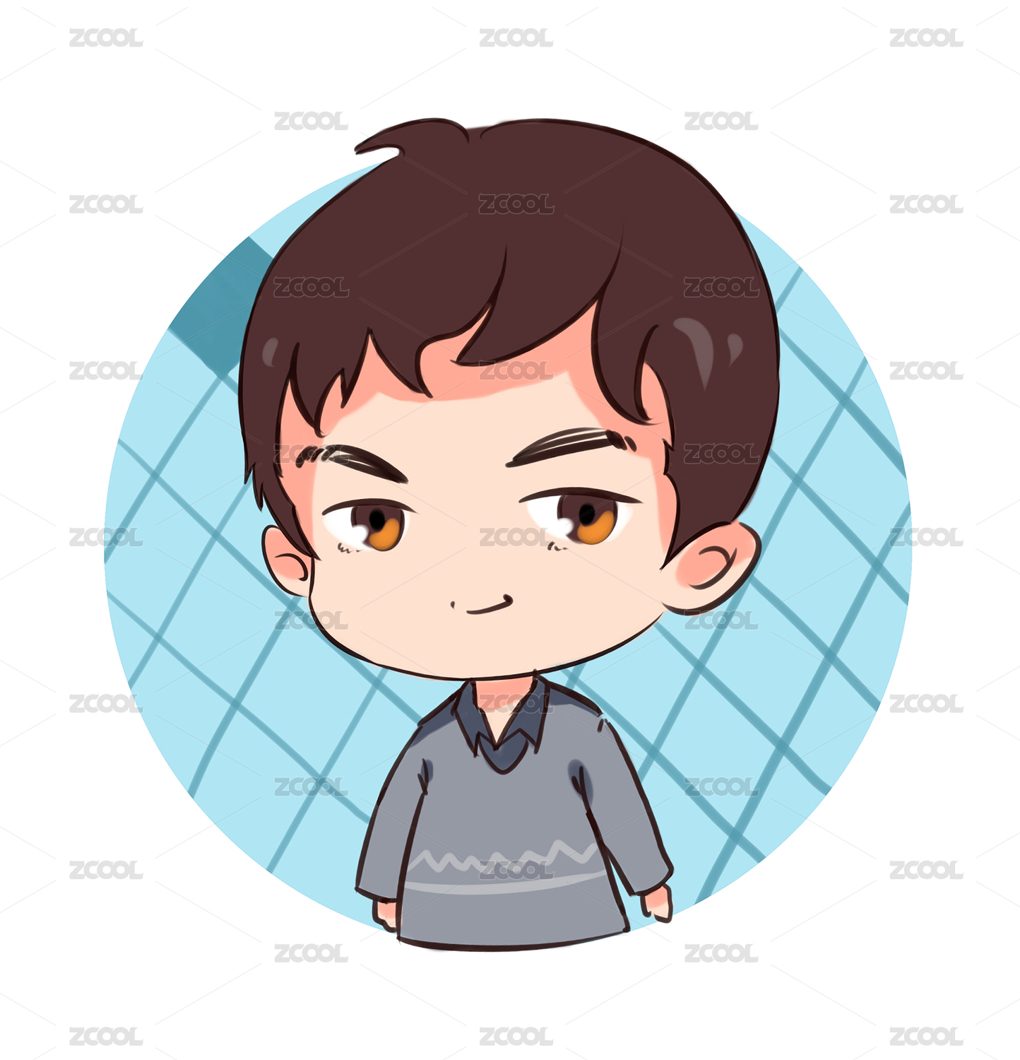 可爱的,男孩,托腮,思考,插画,人物,元素,男性,扁平风格,扁平