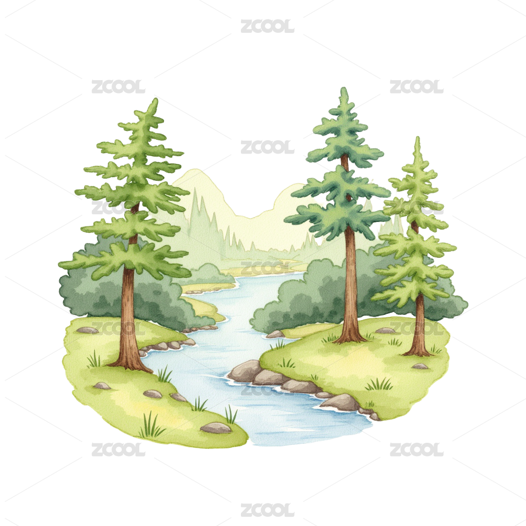 剪纸风格户外公园河水广场绿色的风景插画背景
