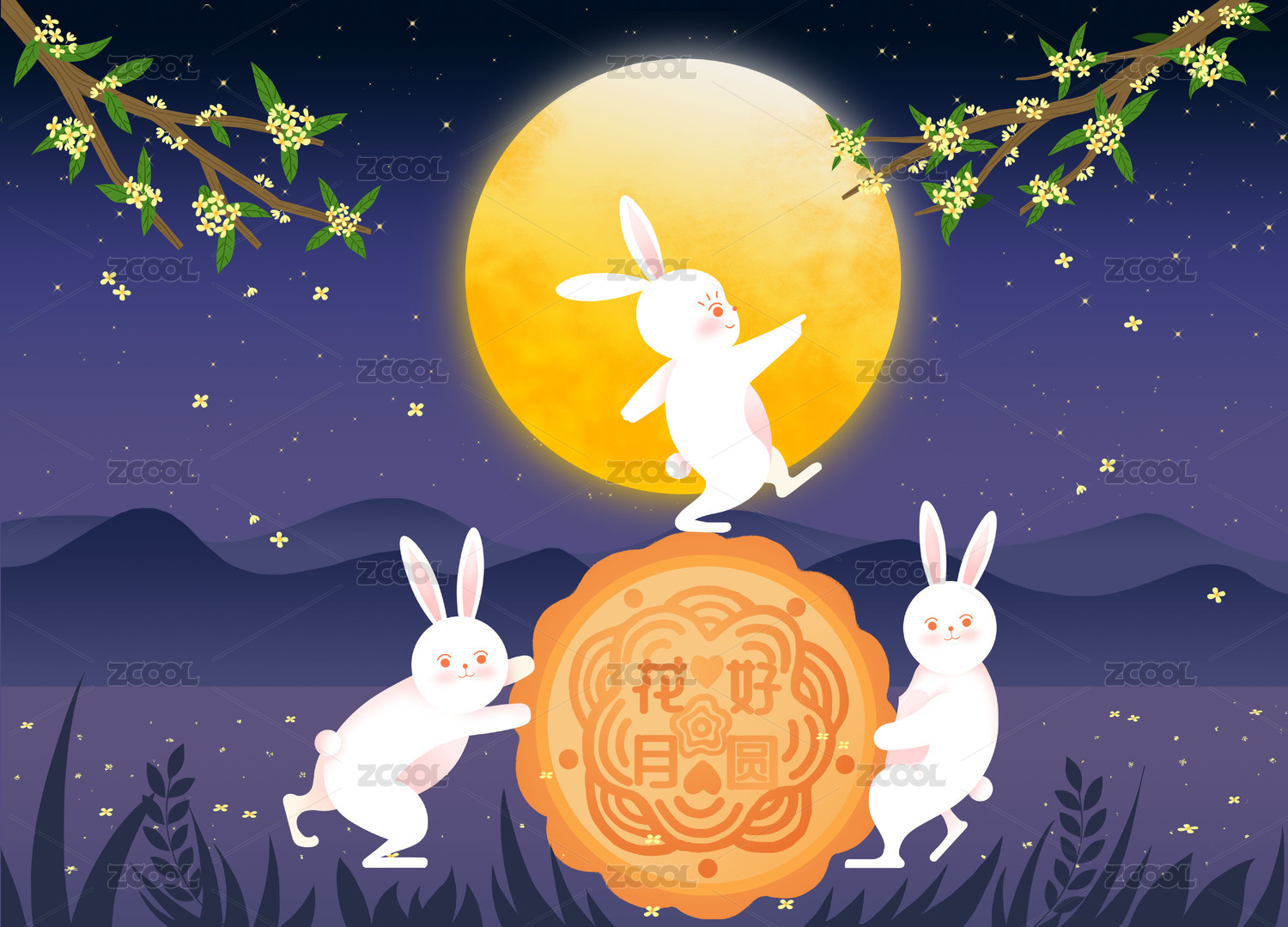 中秋节月兔和月饼