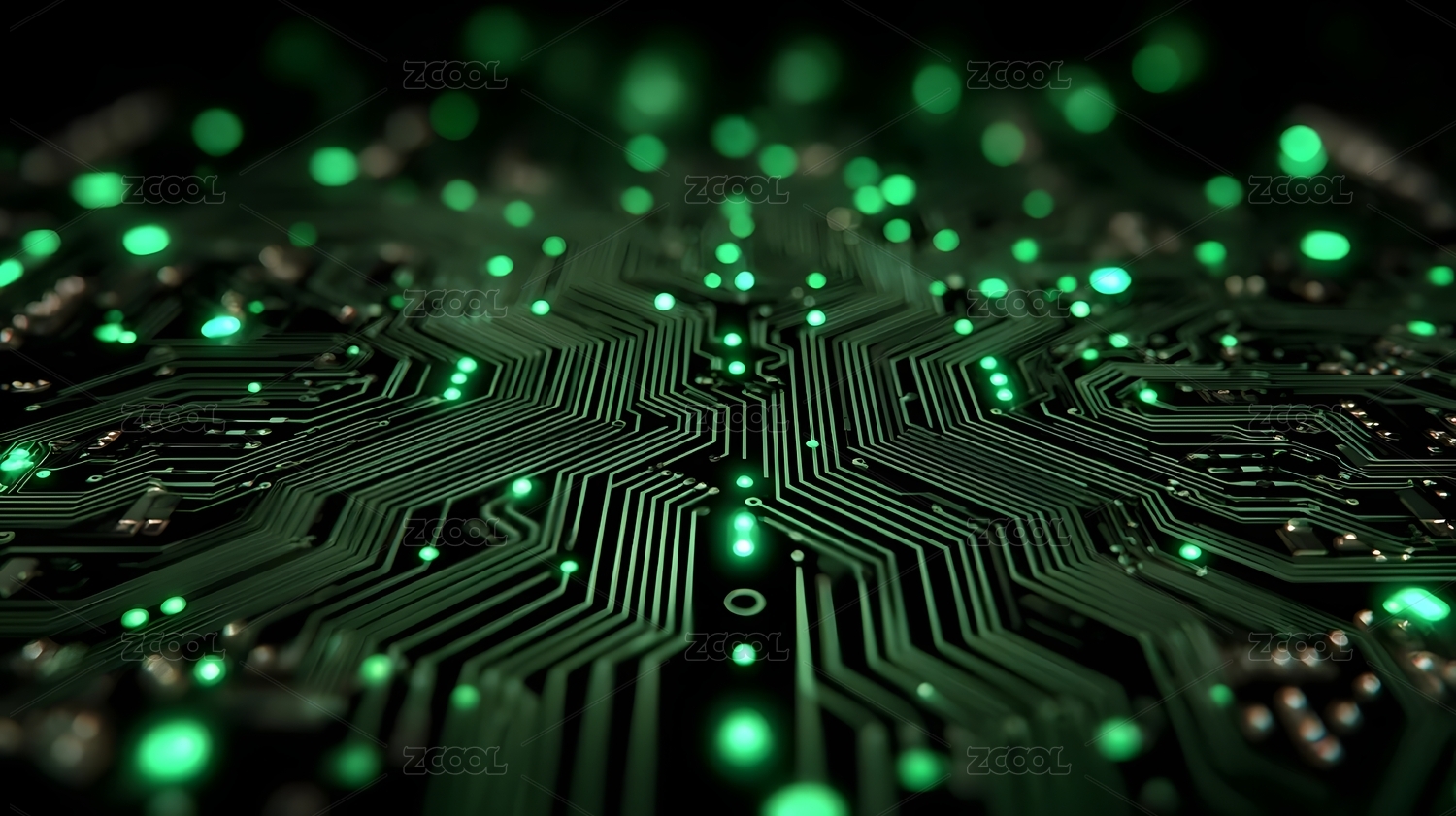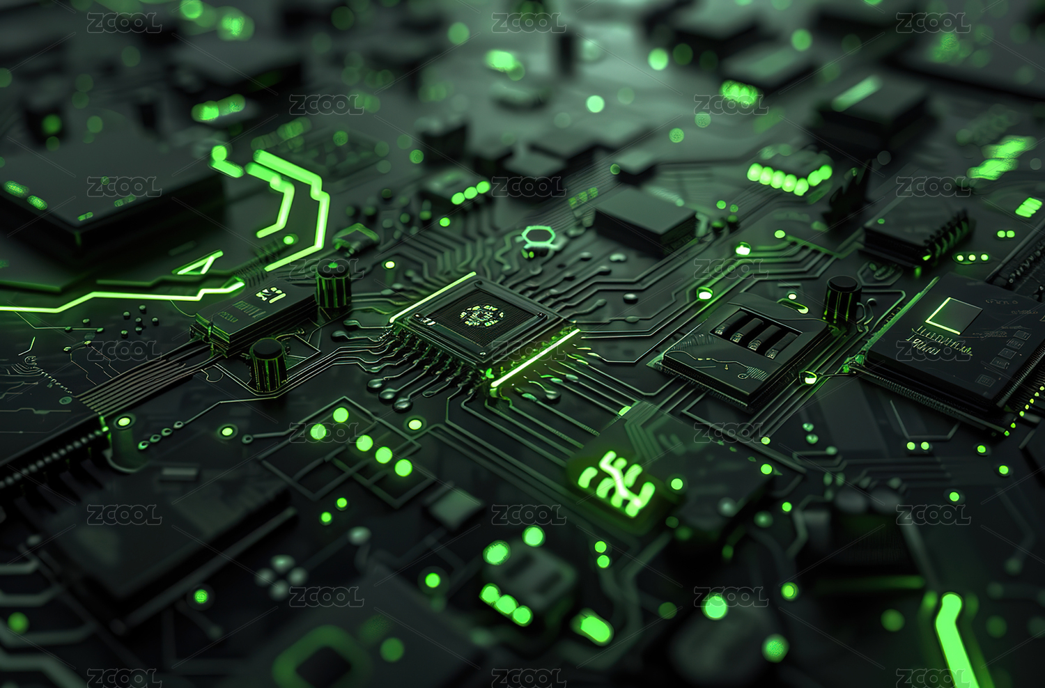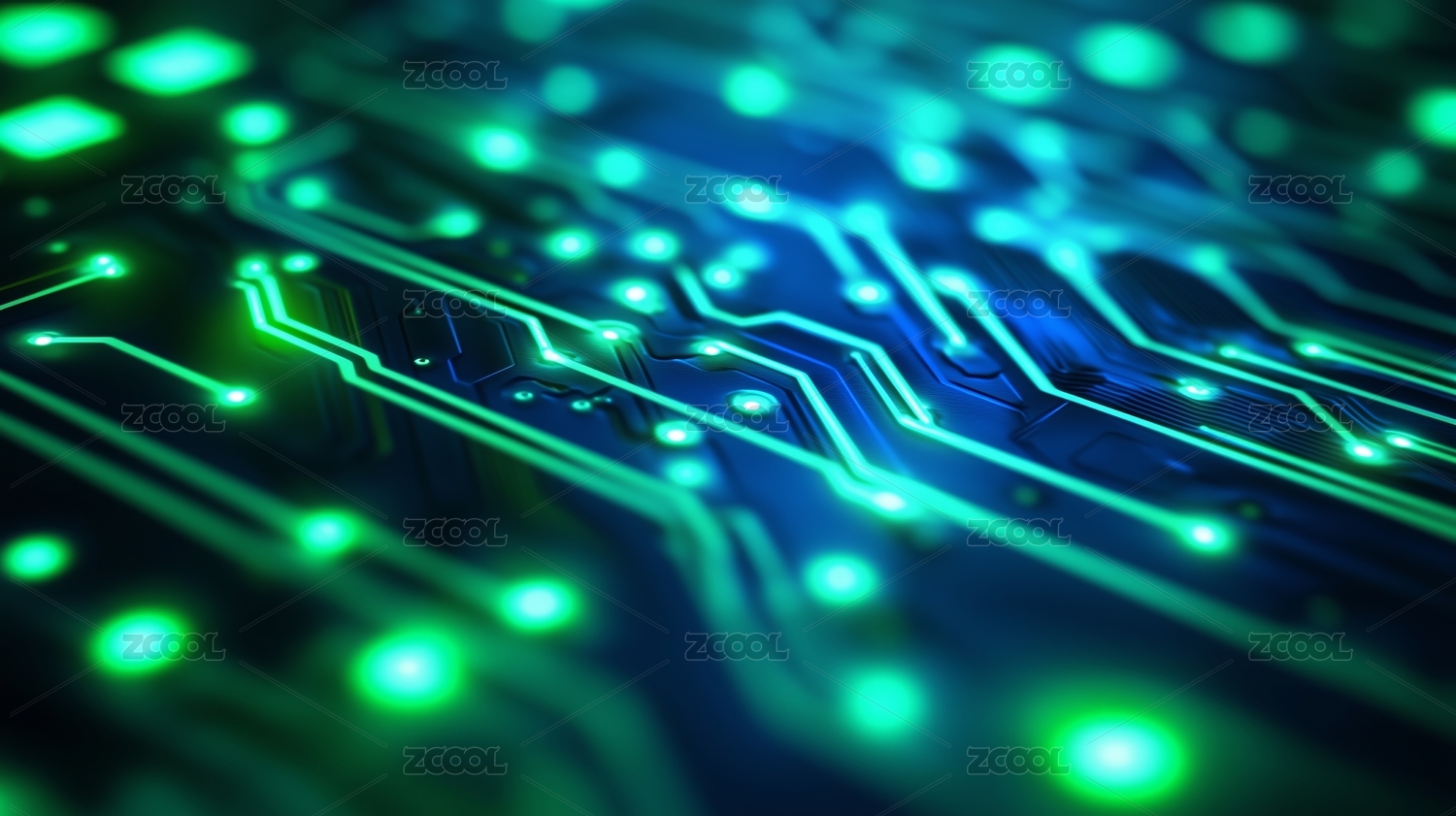 绿色发光电路板特写