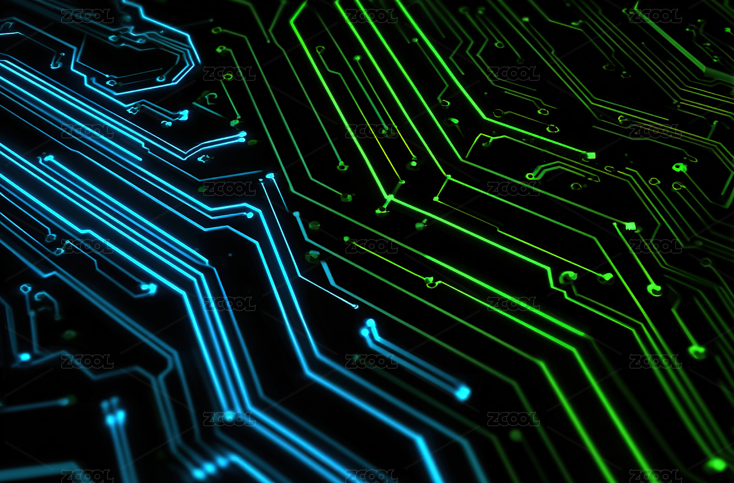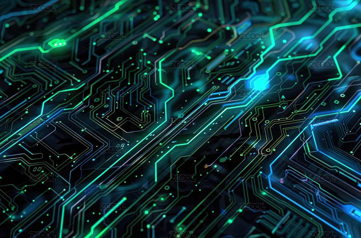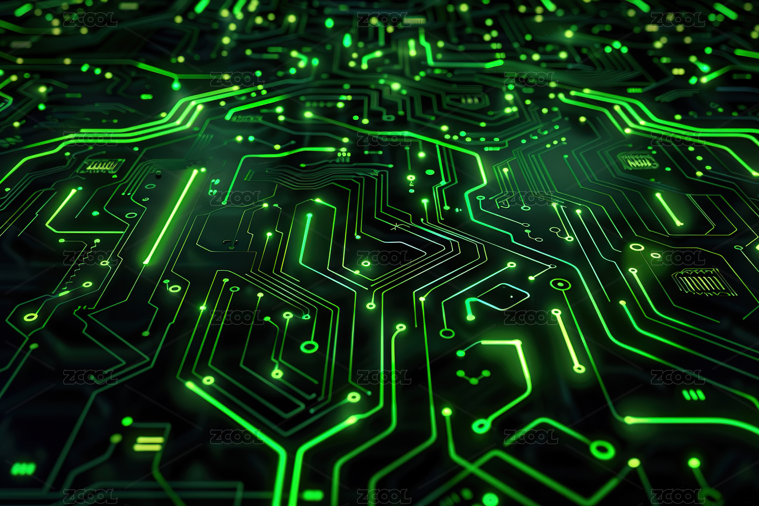 绿色发光电路板特写