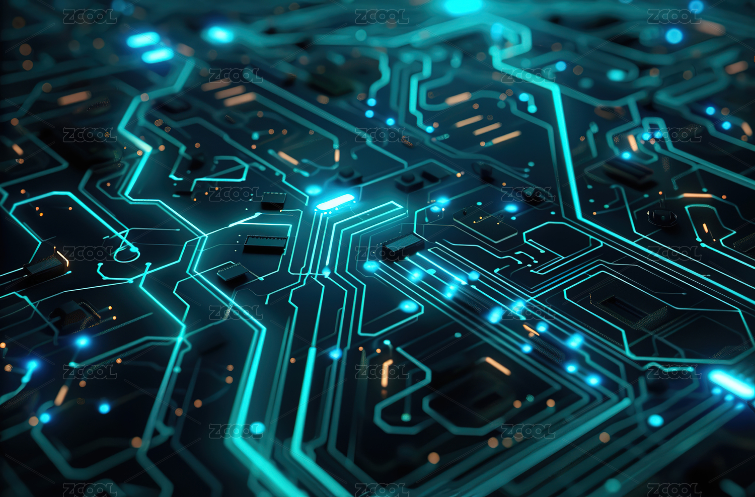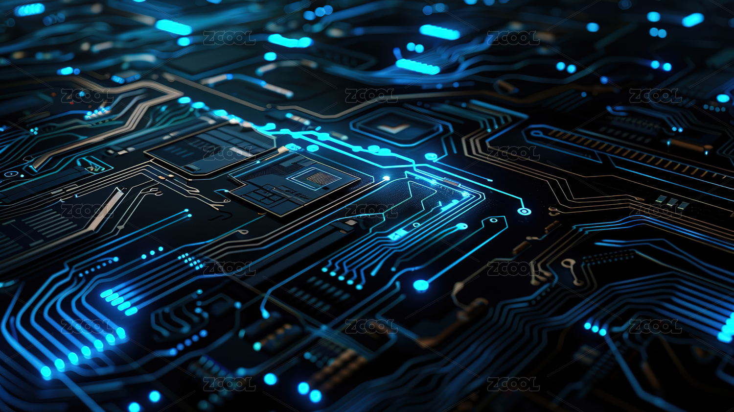 未来科技感电路板芯片特写