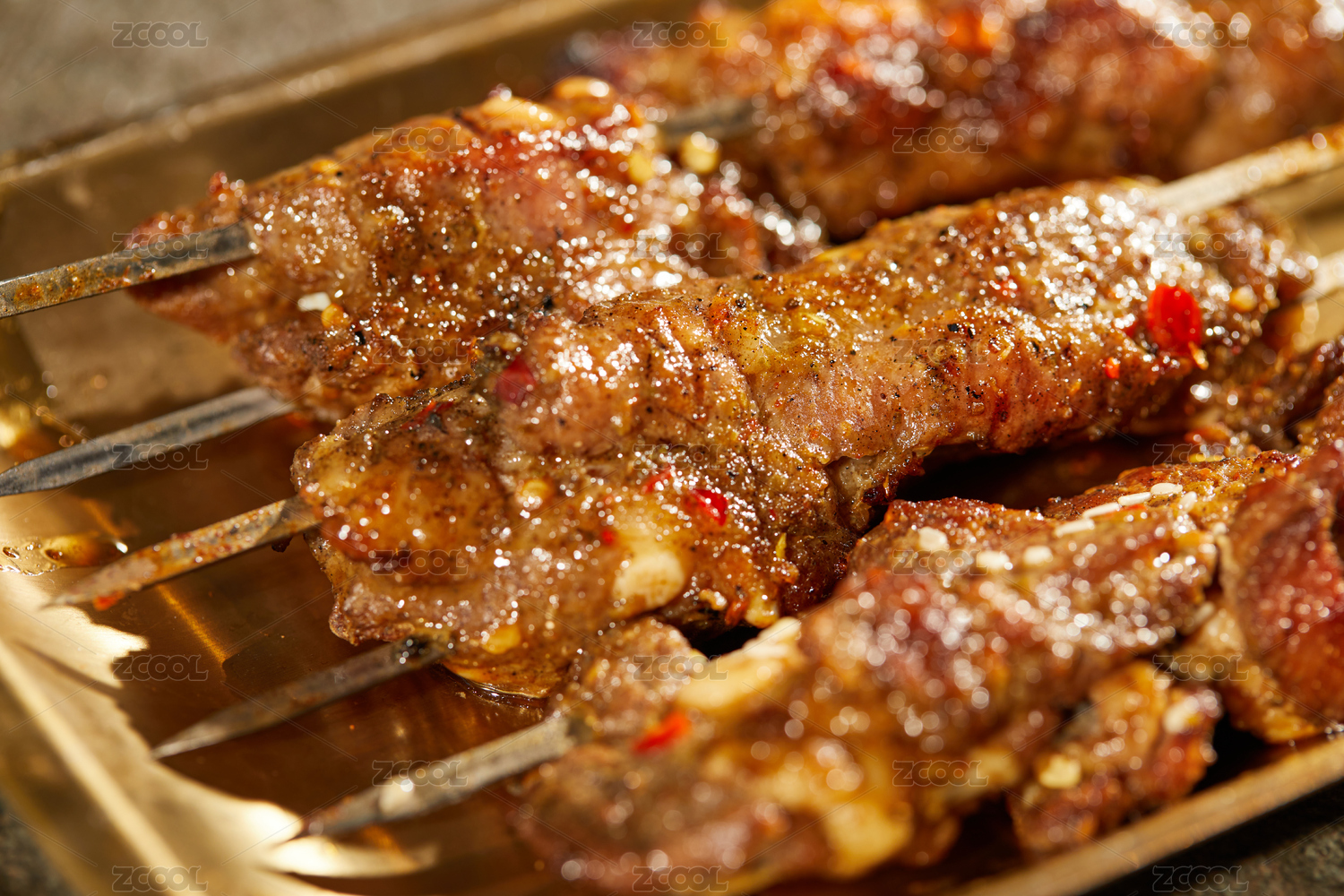 烤好的大牛肉串特写展示