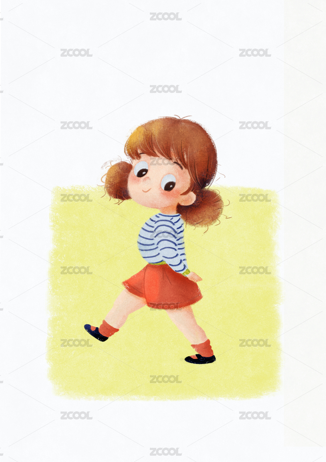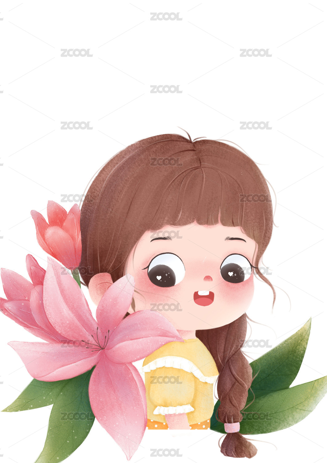 女孩,插画,熊,可爱,长发,卡通,儿童,艺术