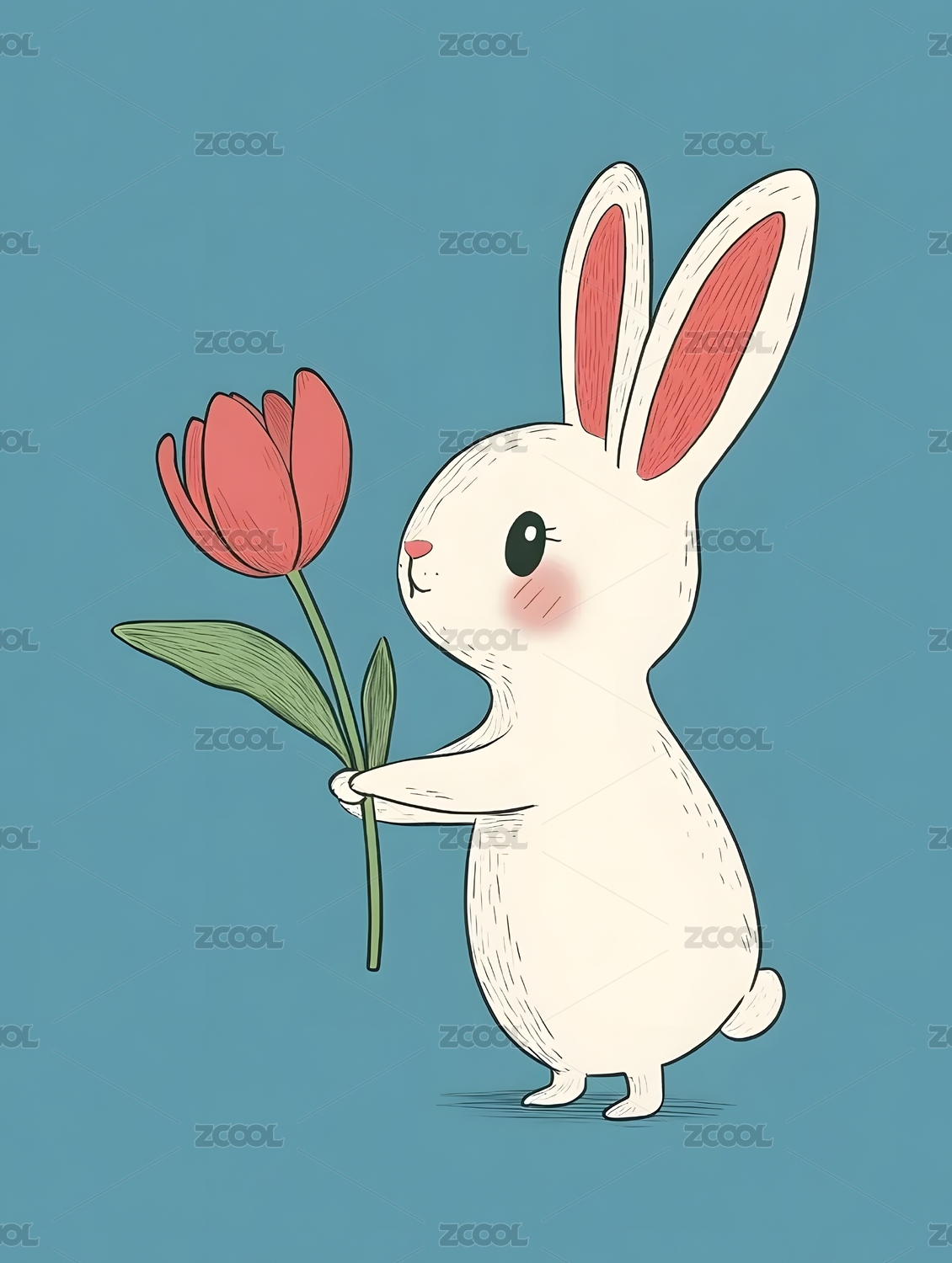卡通,兔子,可爱,背景,插画,云朵,花卉,春天
