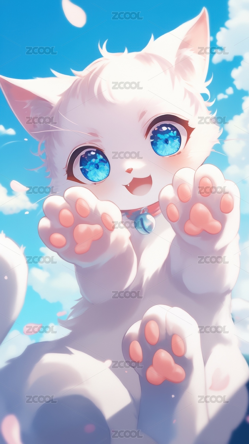 窗边的白色猫咪蓝色蝴蝶结点缀