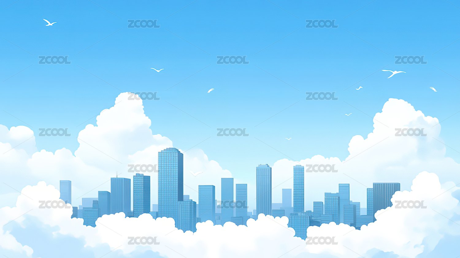 城市建筑插画壁纸天空飞鸟