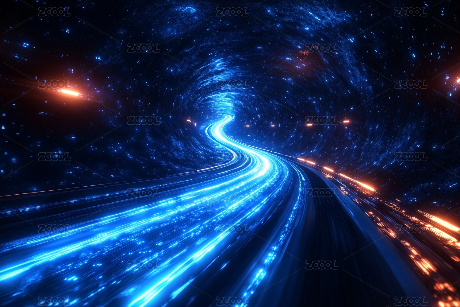 梦幻星空下的蓝色流光道路