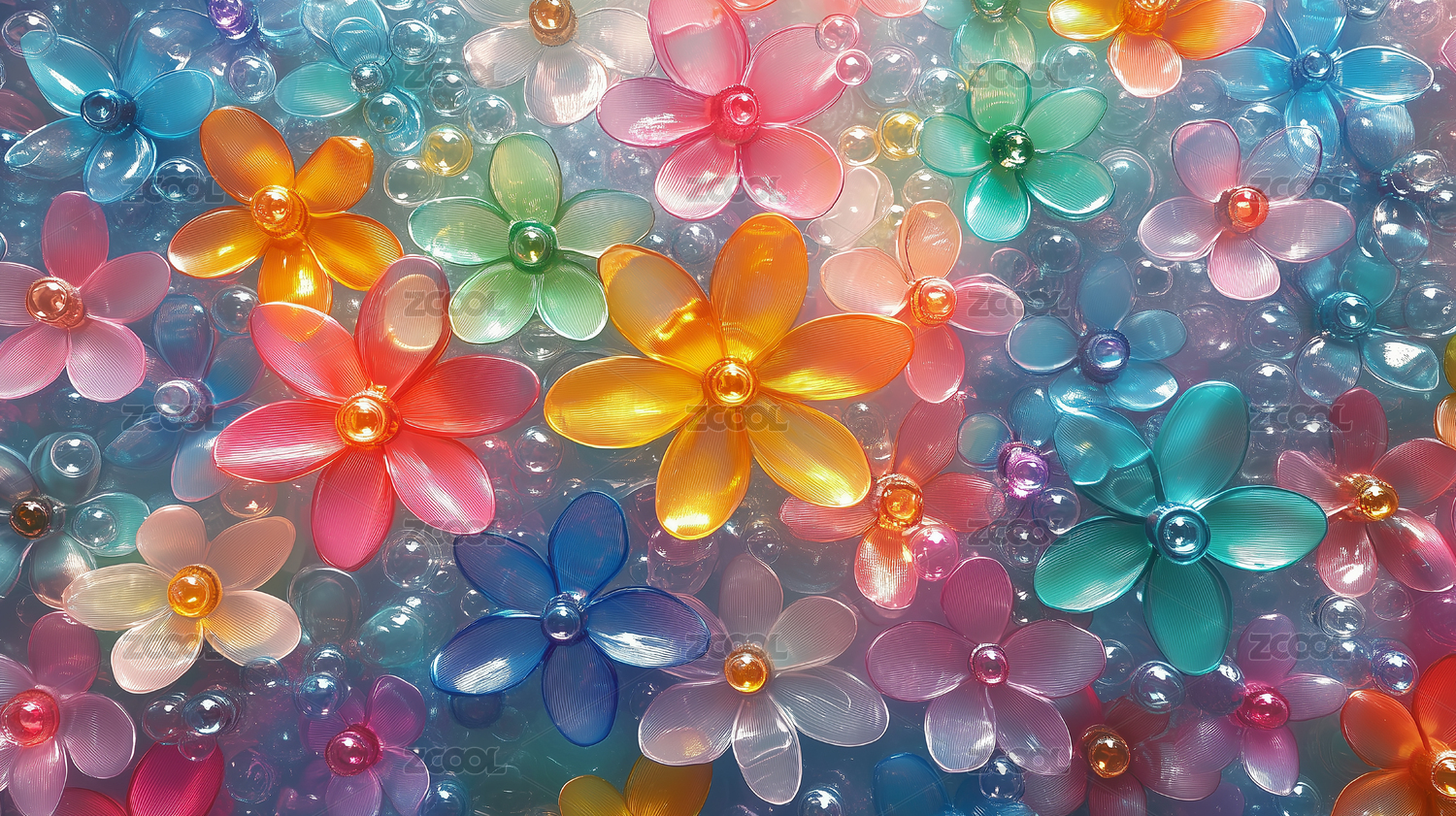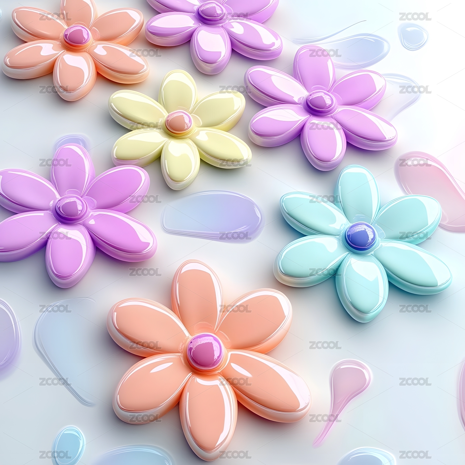 彩花缤纷漫舞,萌趣盈溢梦幻蓝底